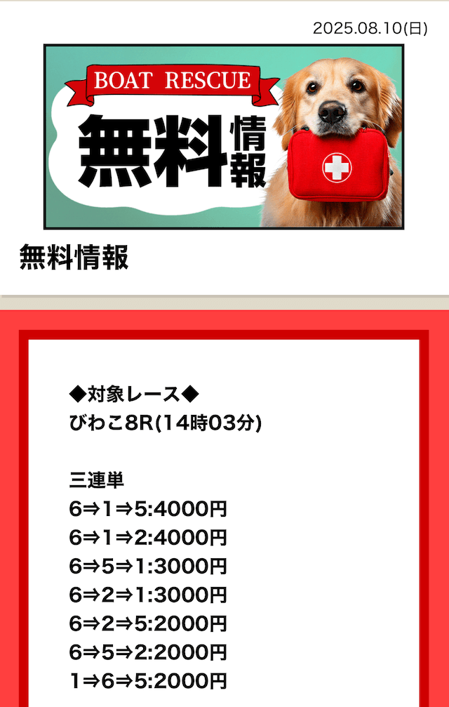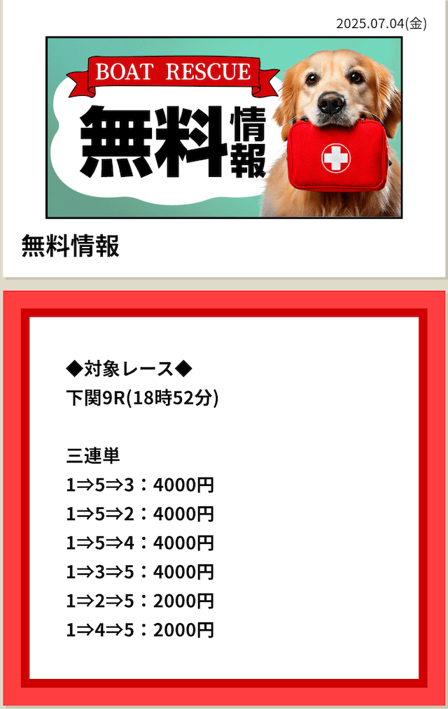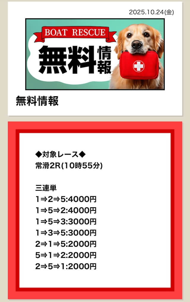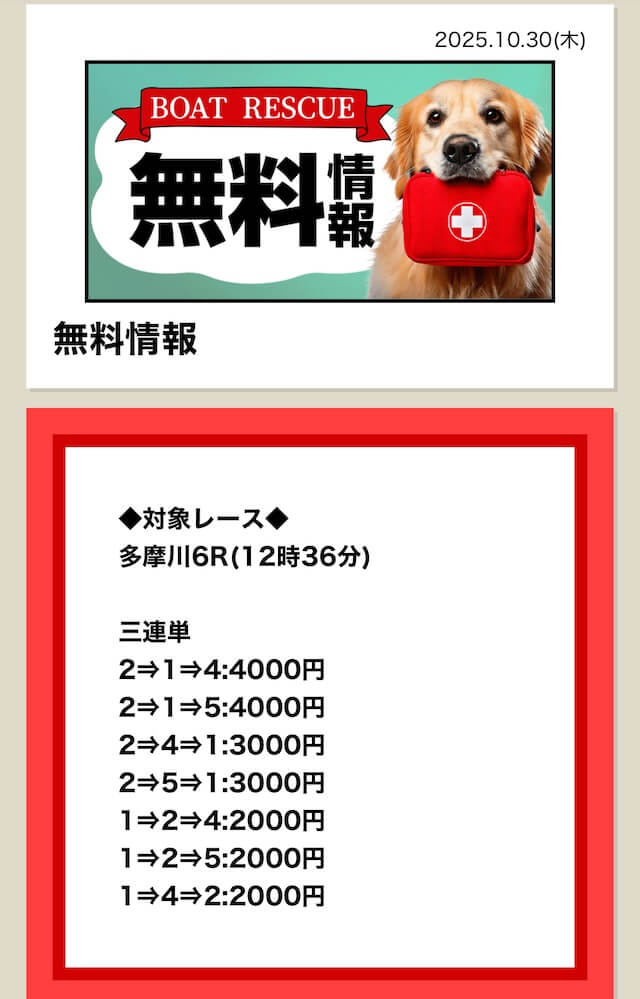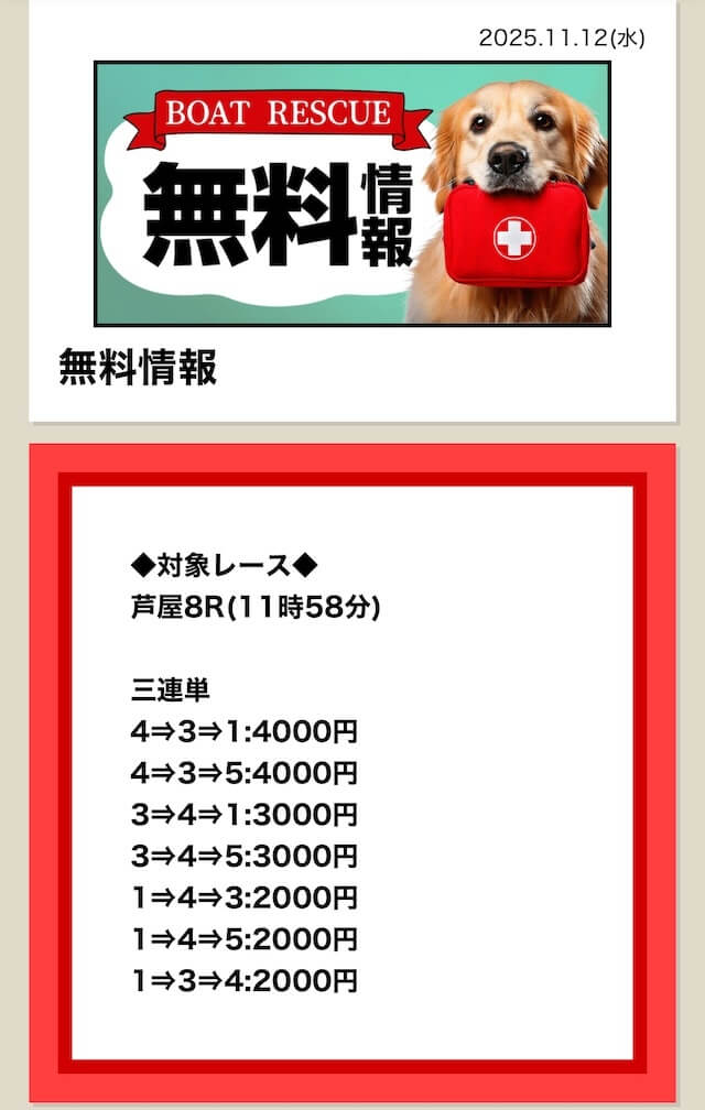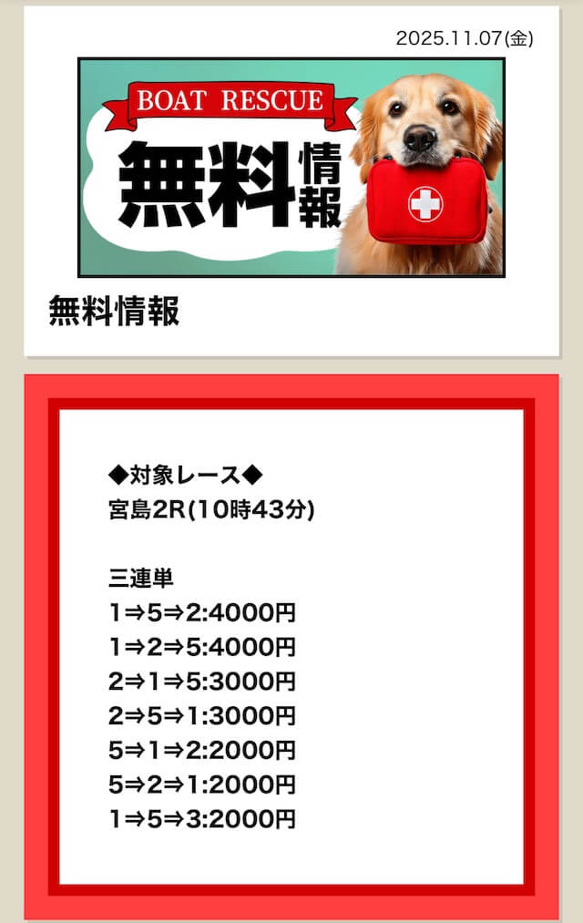 ボートレスキューの無料予想は、