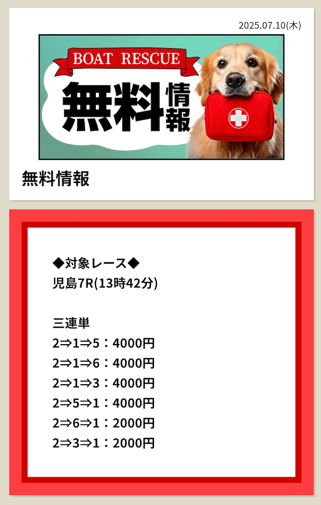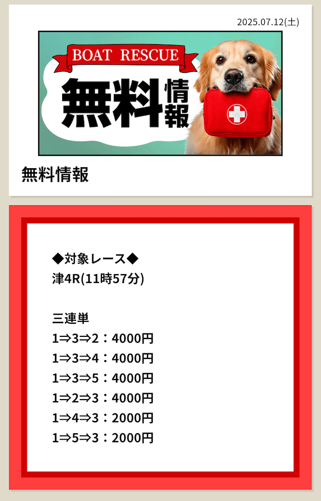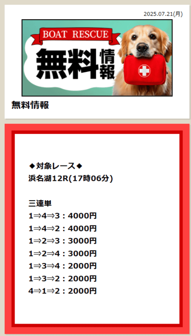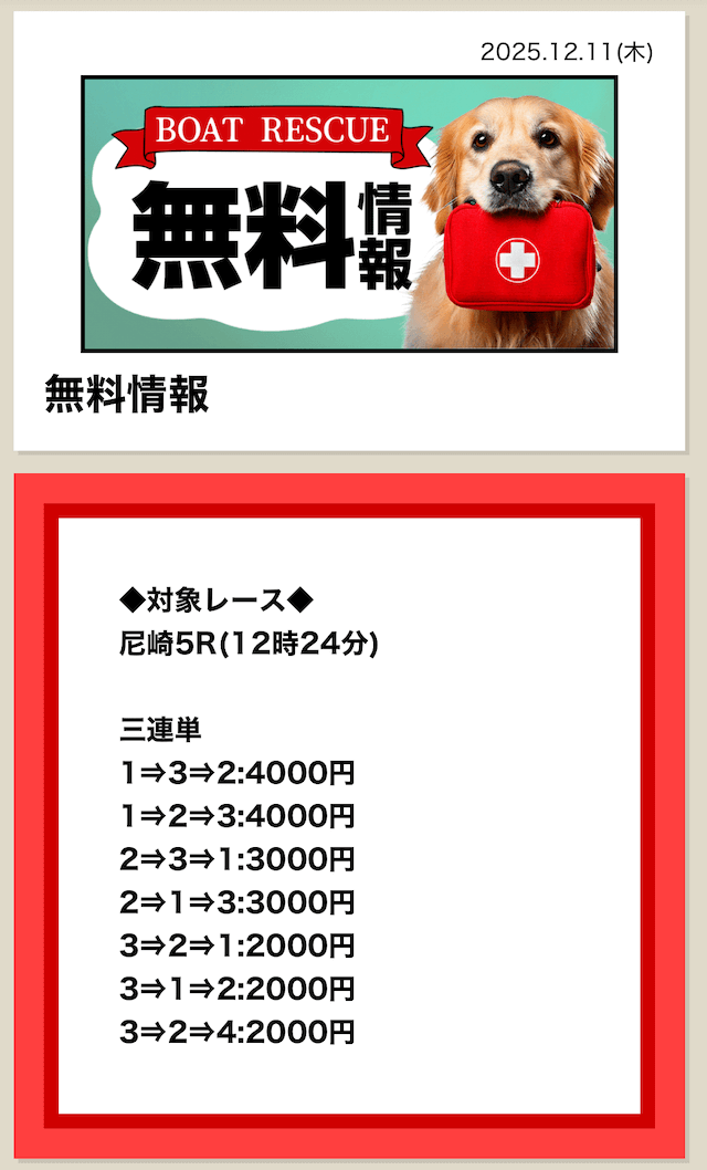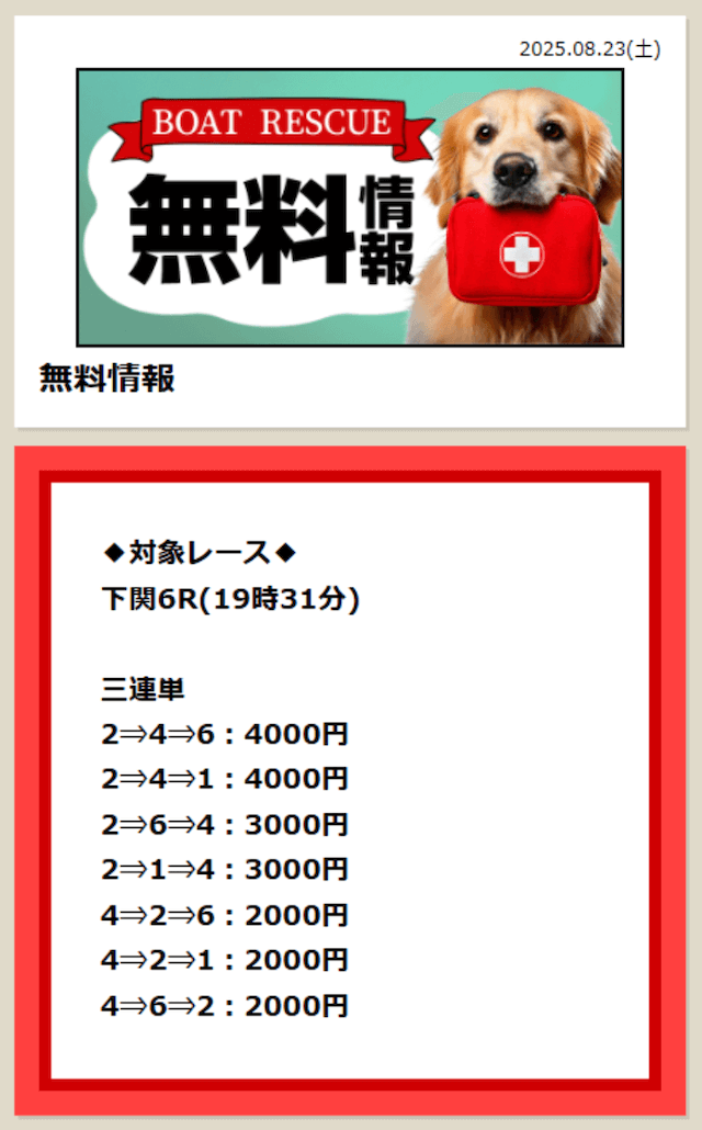 ボートレスキューの無料予想は、