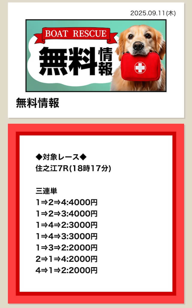 完全無料情報や毎日2レースなどが記載されていました。