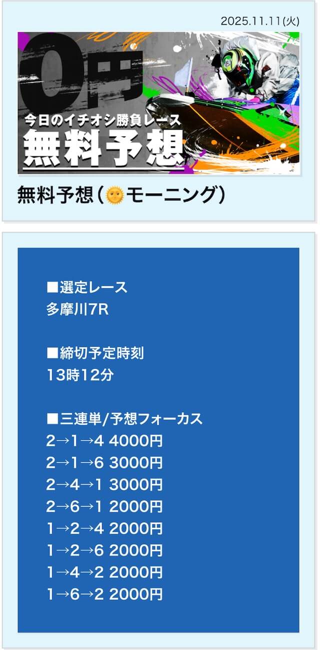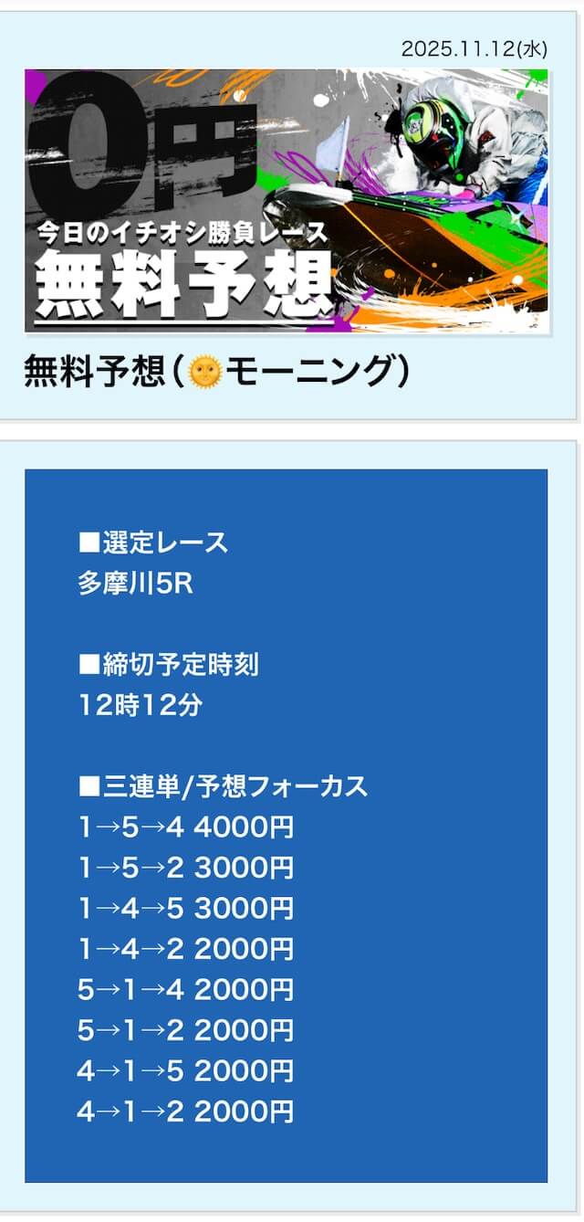 | 11月12日 | 多摩川5R | 三連単 | 0円 | 📸 |