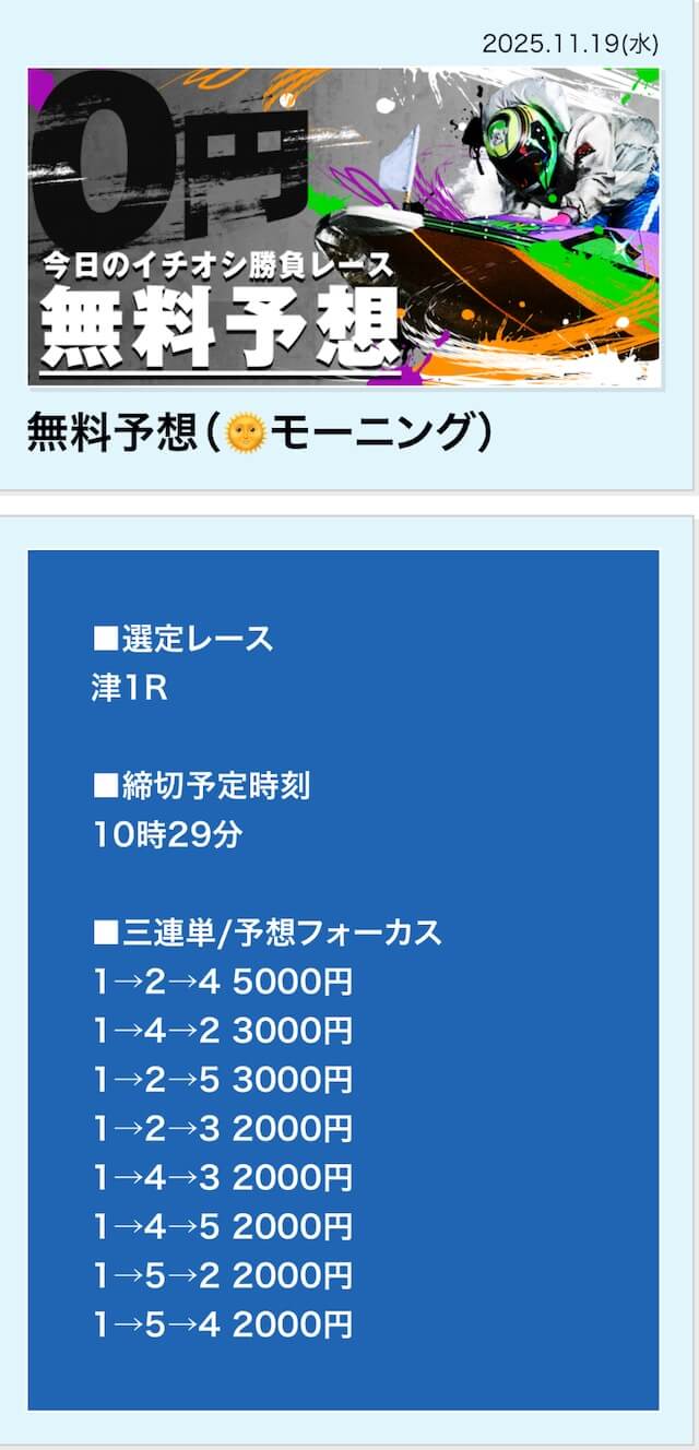 | 11月19日 | 津1R | 三連単 | 0円 | 📸 |