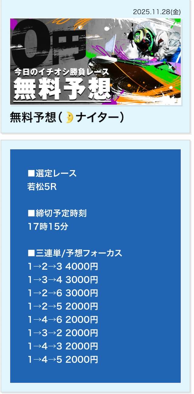 | 11月28日 | 若松5R | 三連単 | 0円 | 📸 |
