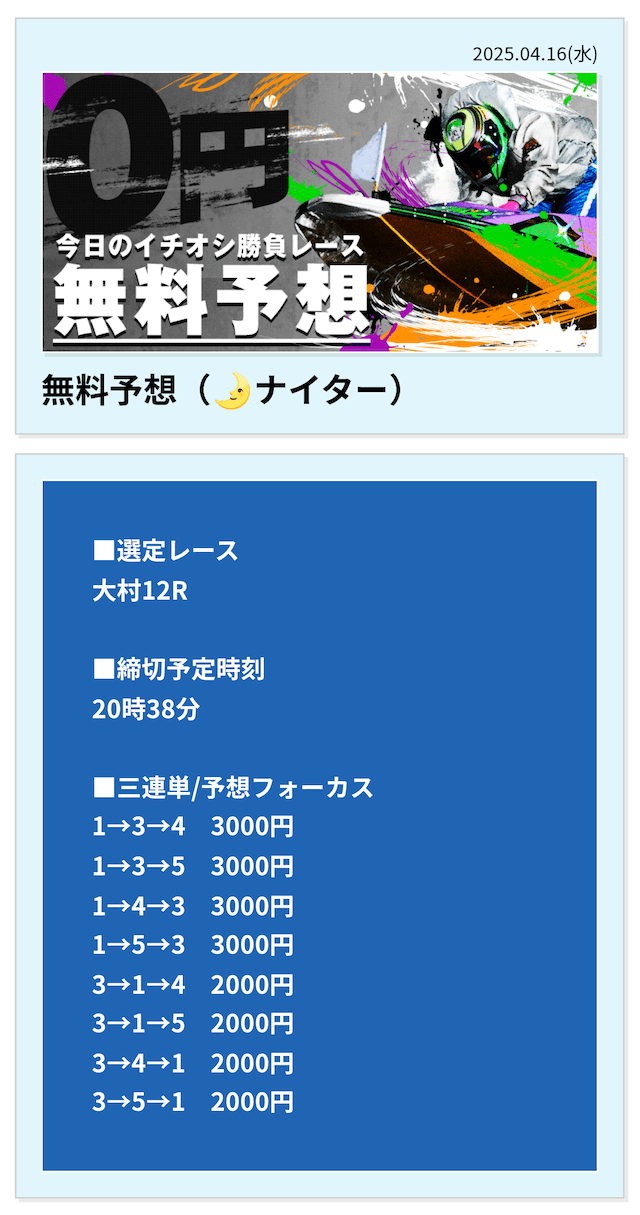 | 4月16日 | 大村12R | 三連単 | +65,400円 | 📸 |