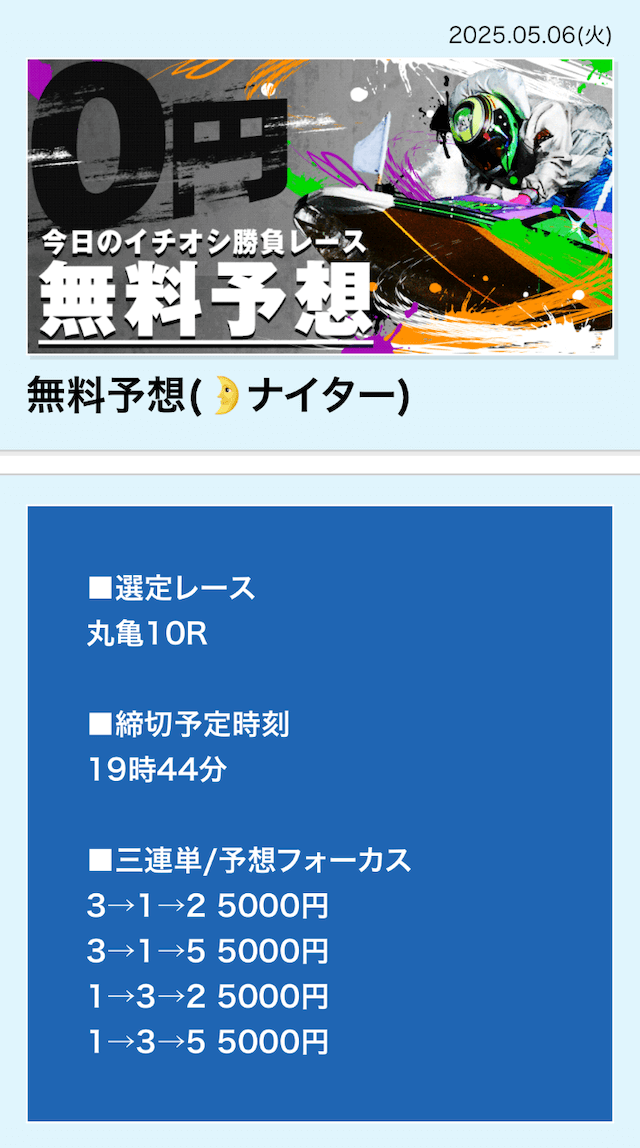 | 5月9日 | 丸亀9R | 三連単 | 0円 | 📸 |