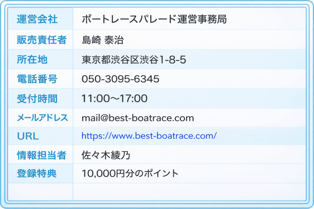 ボートレースパレードは特商法表記をきちんと掲載しています。