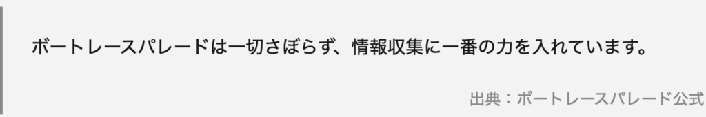 競艇で暮らす毎日というキャッチコピーを掲げるボートレースパレード。