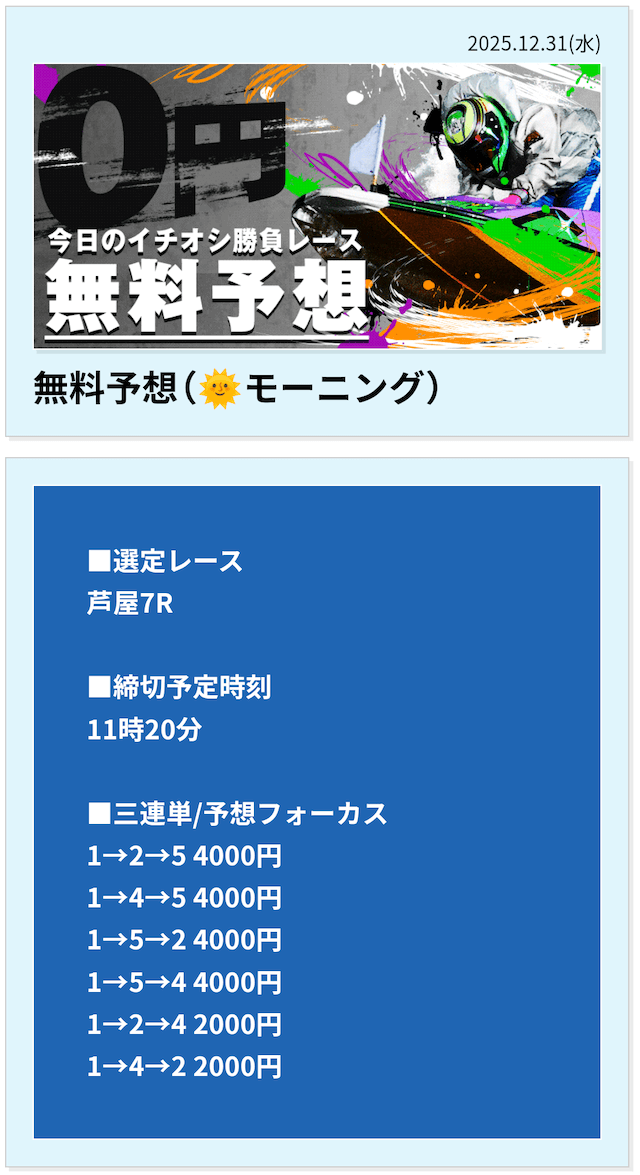 | 12月31日 | 芦屋7R | 3単 | 0円 | 📸 |