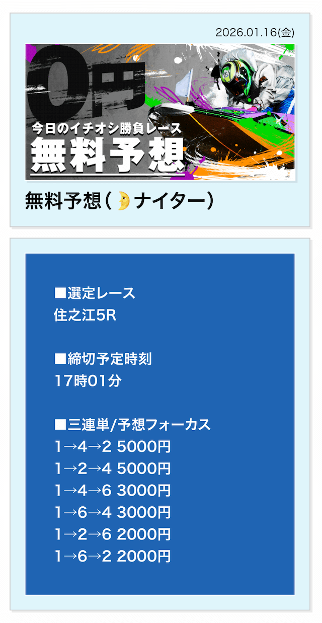 | 1月16日 | 住之江5R | 3単 | 0円 | 📸 |