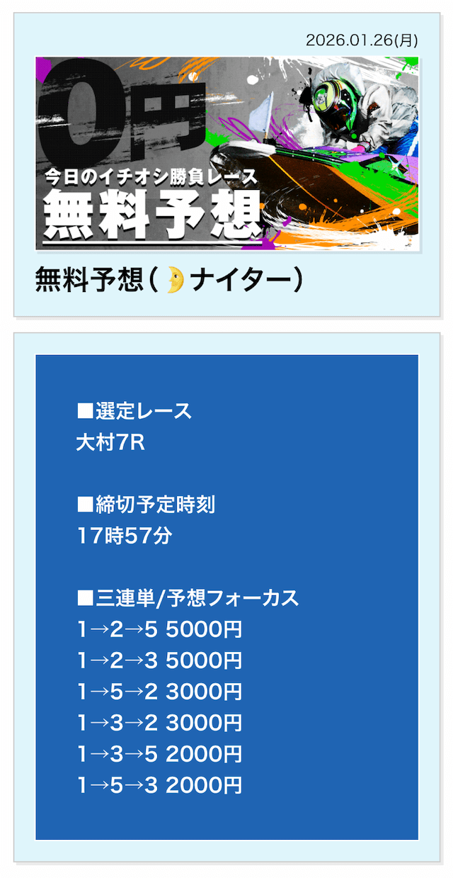 | 1月26日 | 大村7R | 3単 | +16,000円 | 📸 |