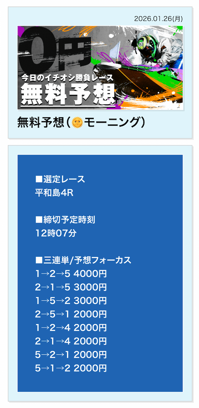 | 1月26日 | 平和島4R | 3単 | +44,400円 | 📸 |