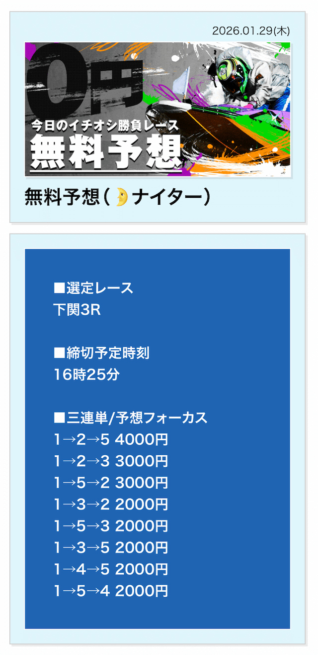 | 1月29日 | 下関3R | 3単 | 0円 | 📸 |