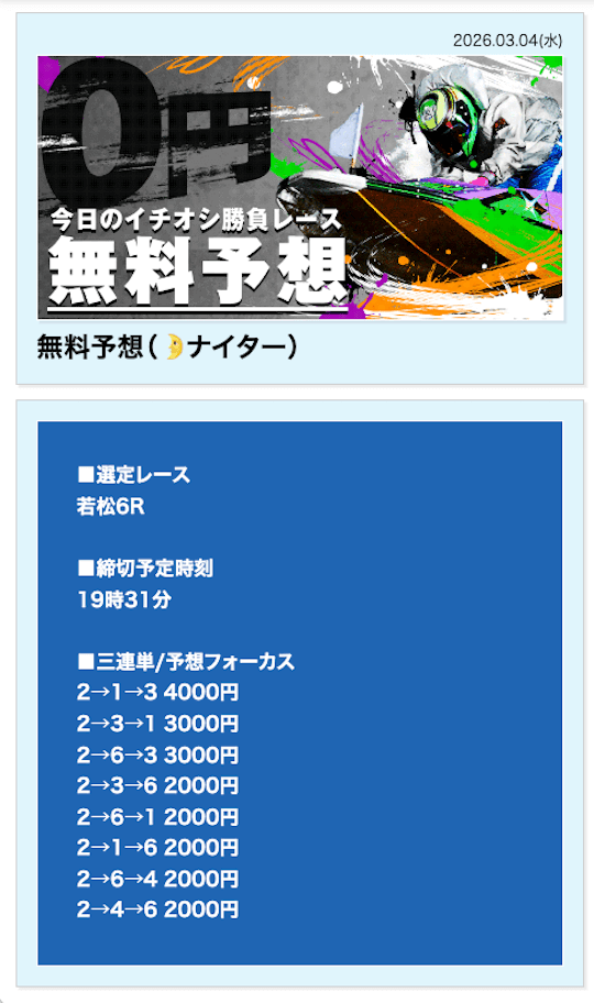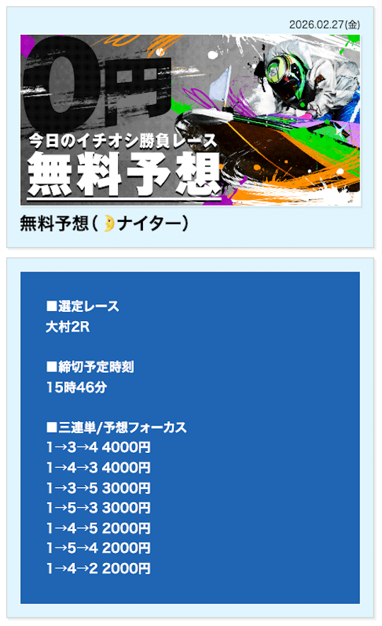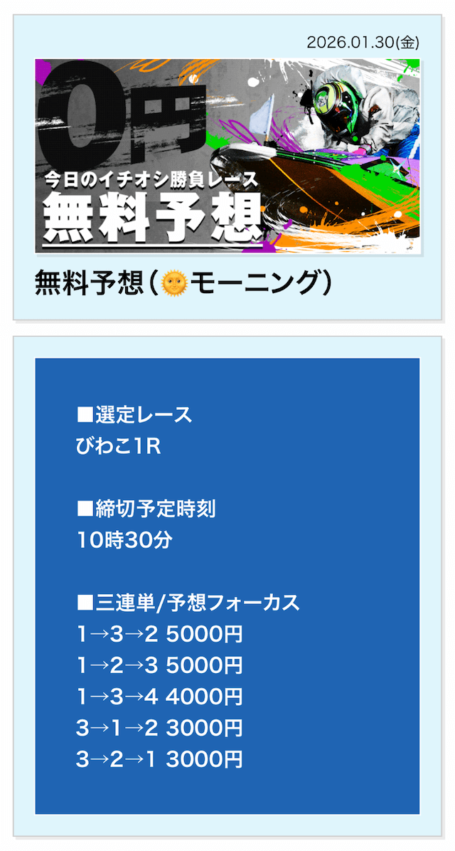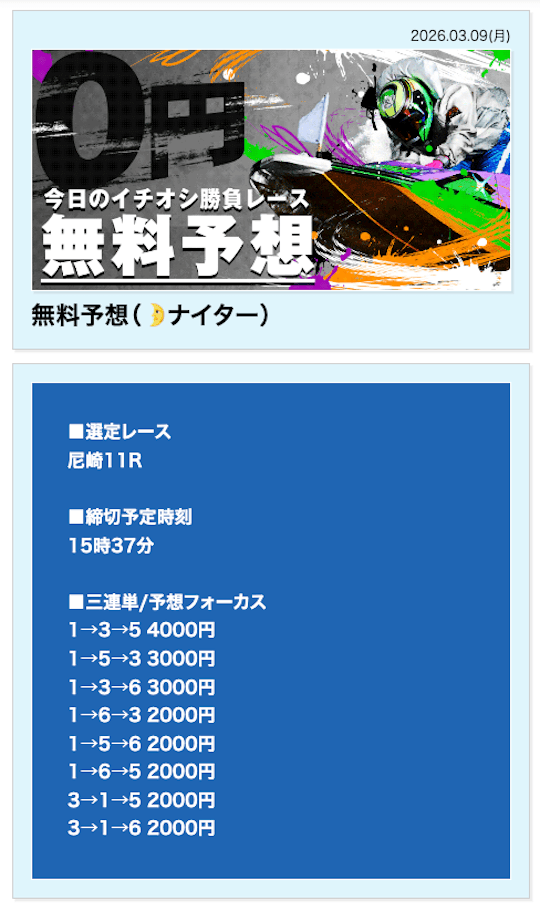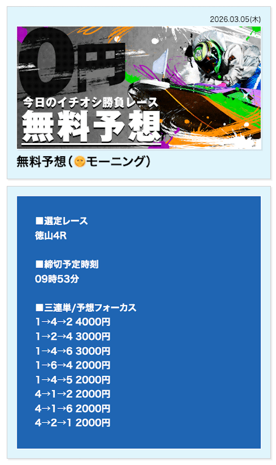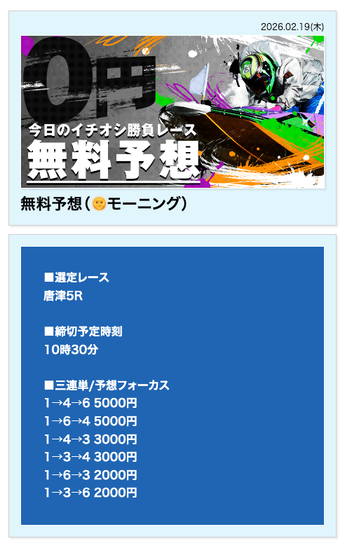 はい。登録も月額費も一切かかりません。登録特典のポイントを使えば、有料予想も1回分無料で体験できました。