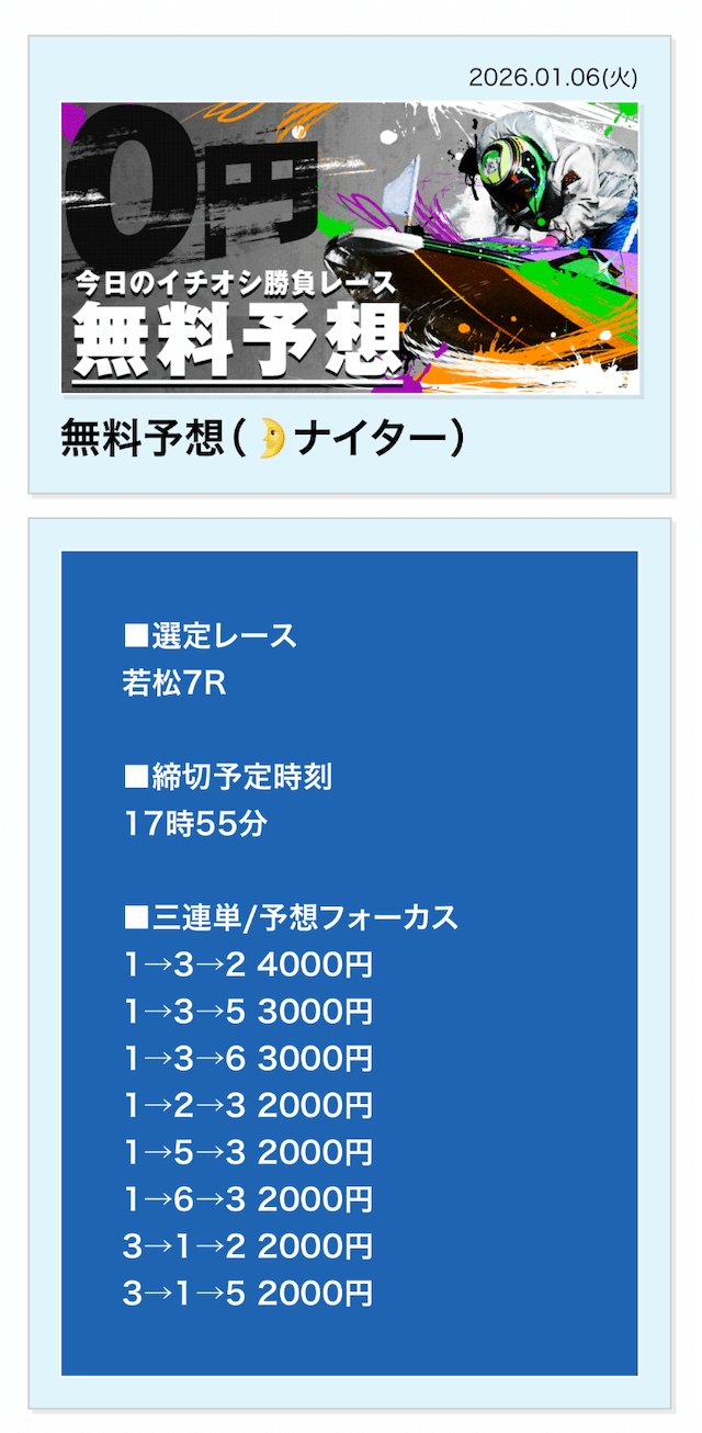 | 1月6日 | 若松7R | 3単 | +28,000円 | 📸 |