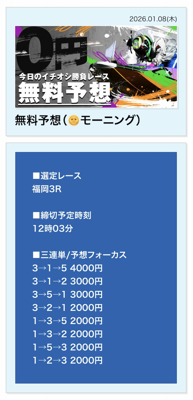 | 1月8日 | 福岡3R | 3単 | +26,800円 | 📸 |