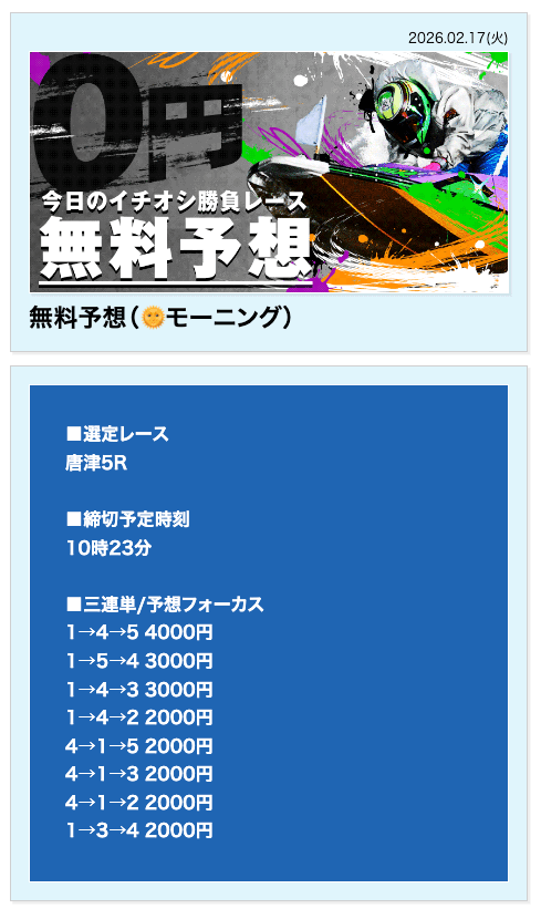 | 2月17日 | 唐津5R | 3単 | +24,900円 | 📸 |