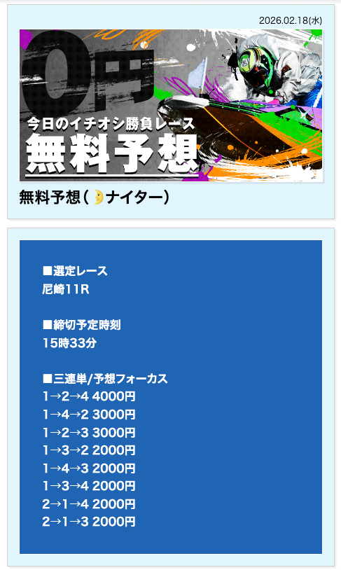 | 2月18日 | 尼崎11R | 3単 | 0円 | 📸 |