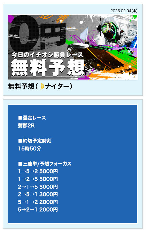 | 2月4日 | 蒲郡2R | 3単 | 0円 | 📸 |