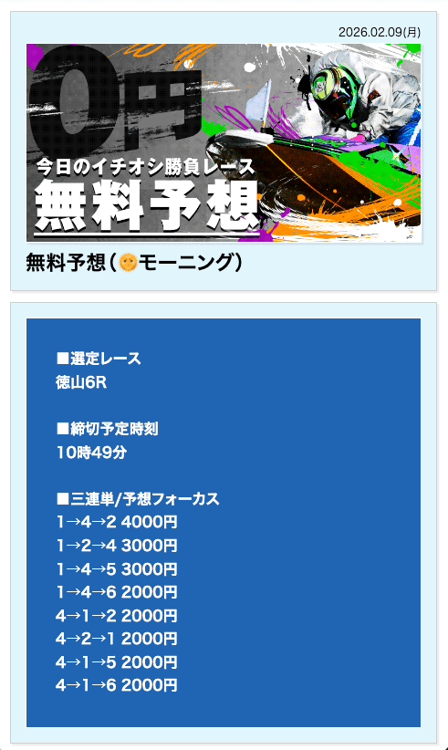| 2月9日 | 徳山6R | 3単 | +29,200円 | 📸 |