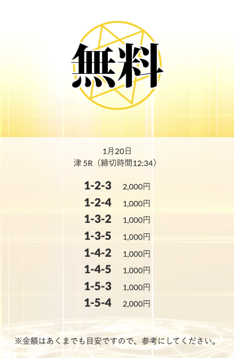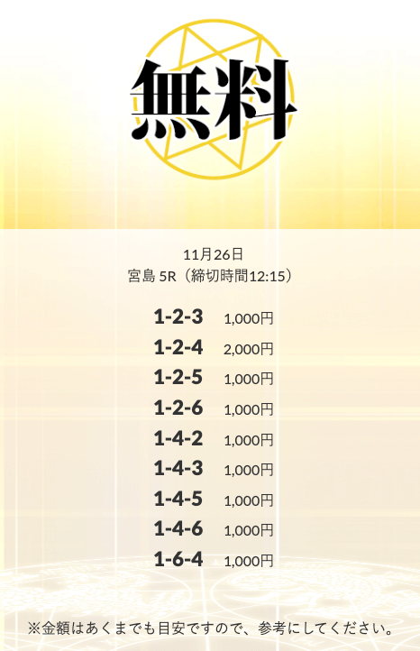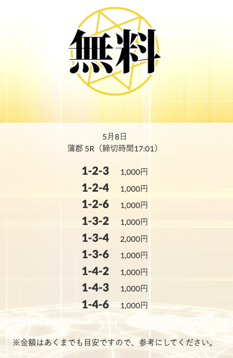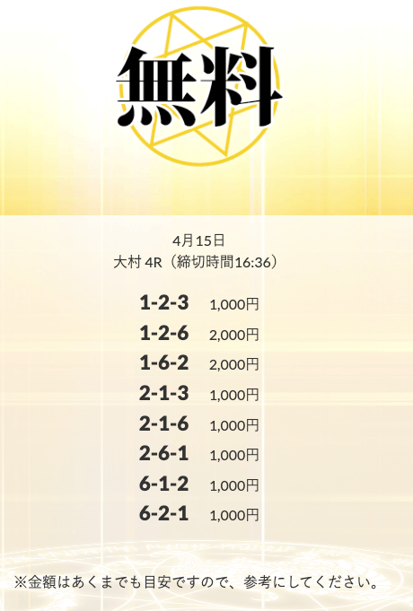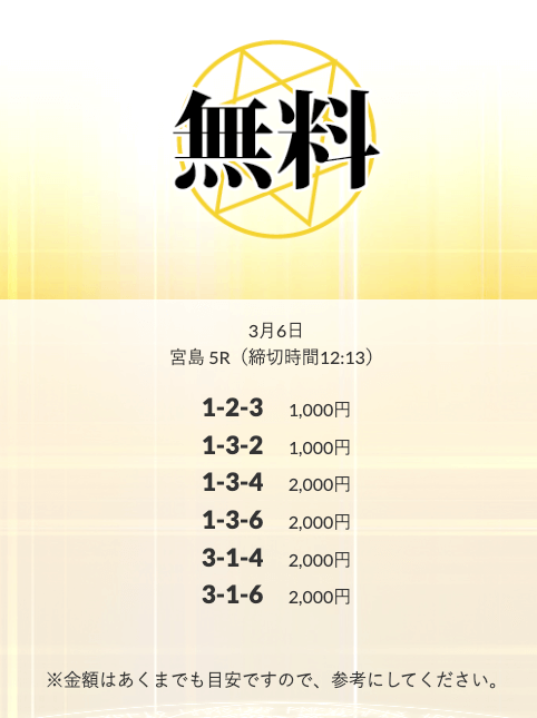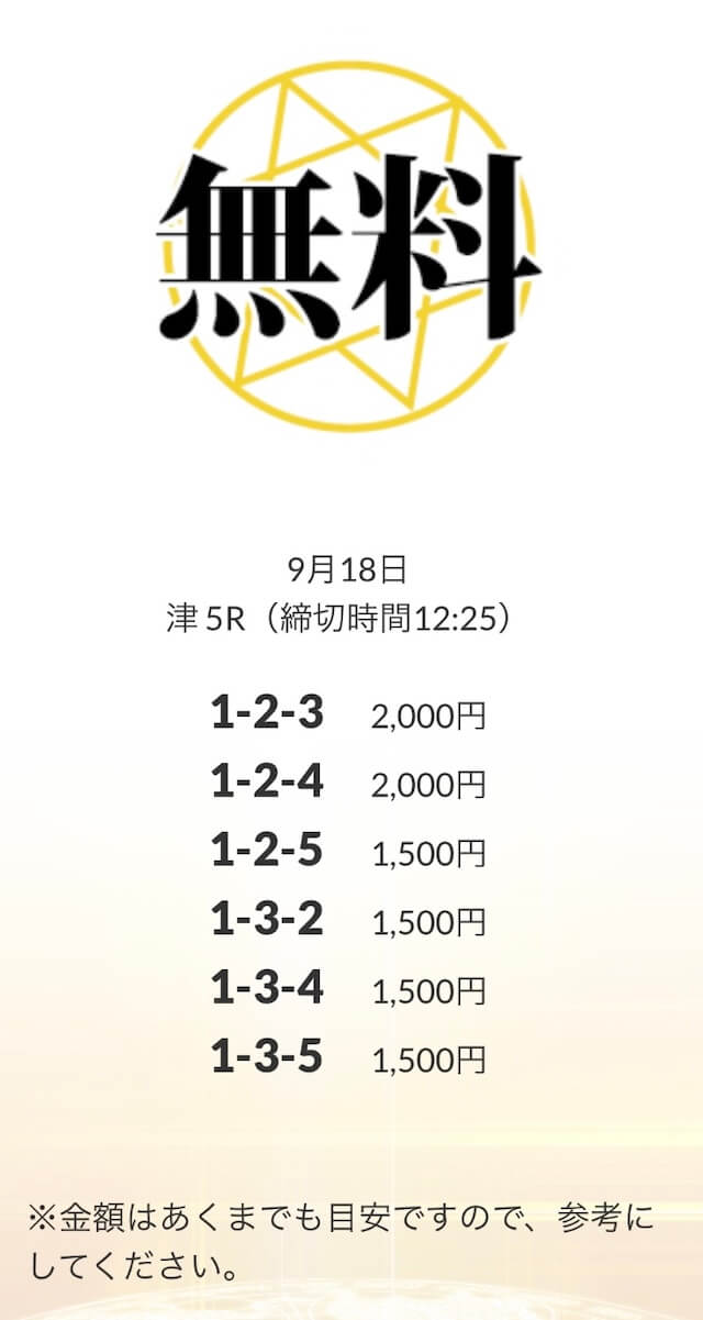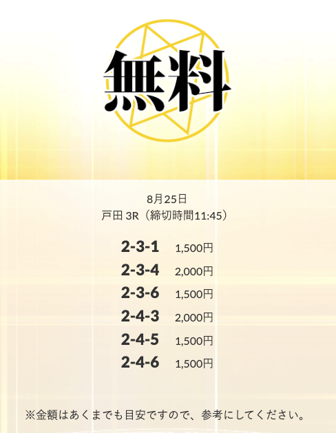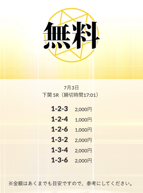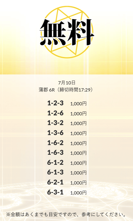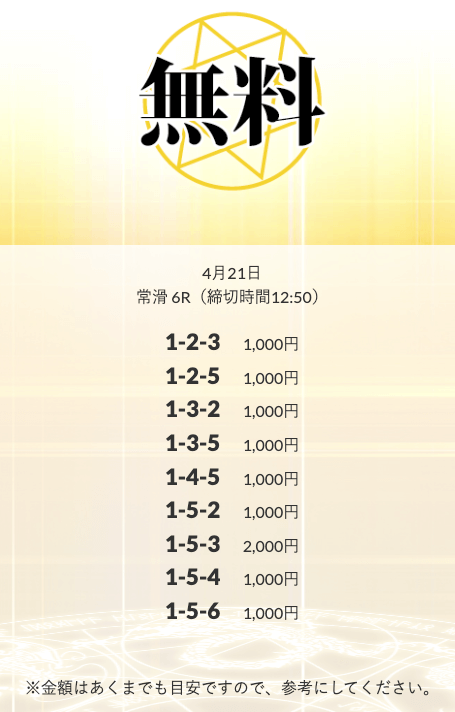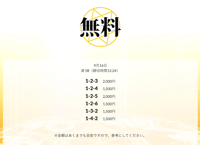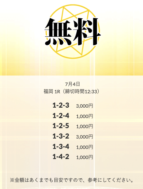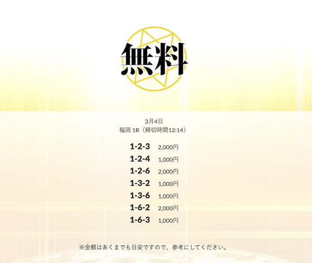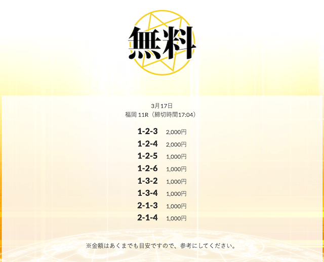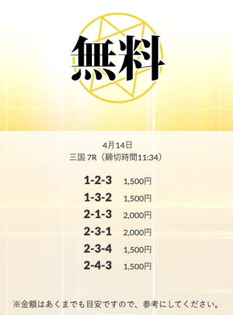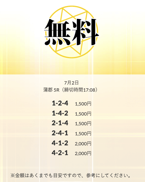 無料予想を実際に使ってみた際、