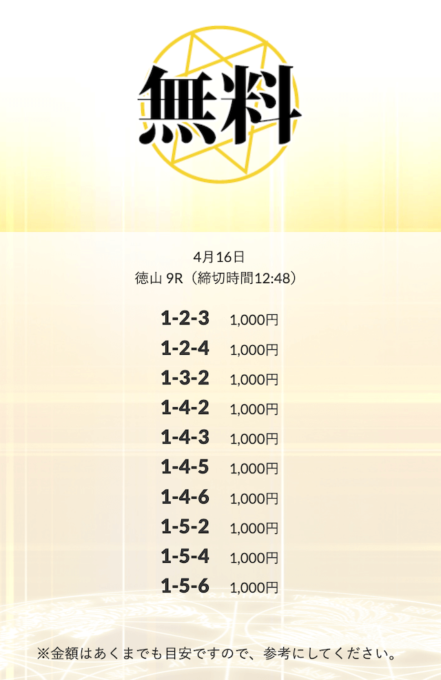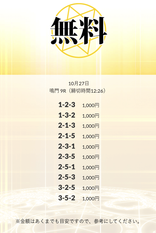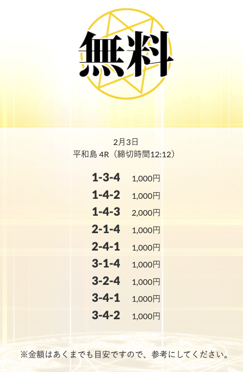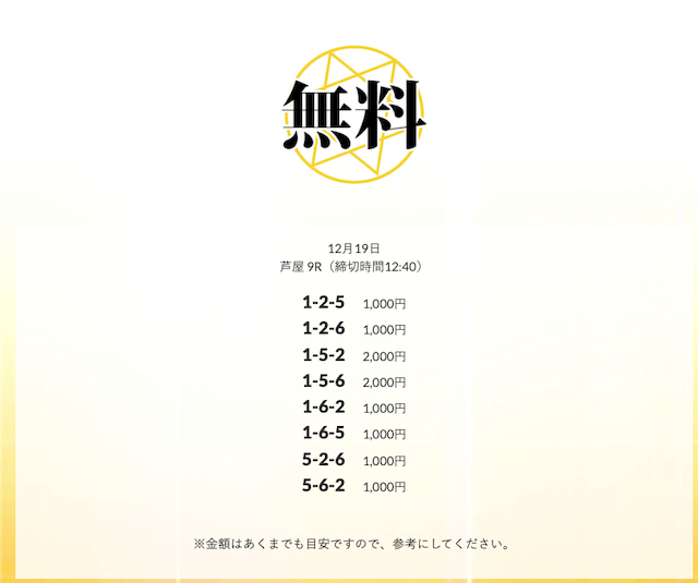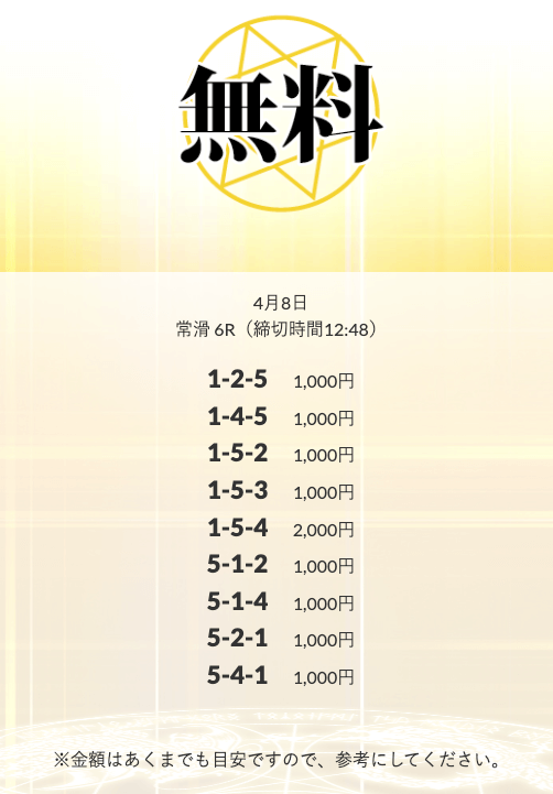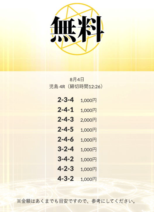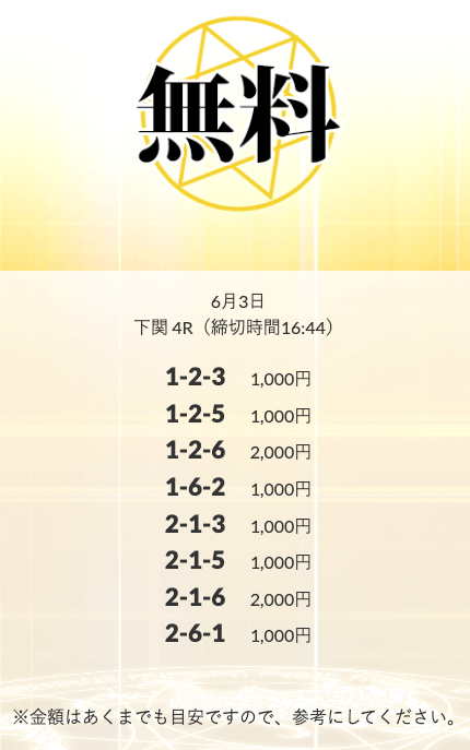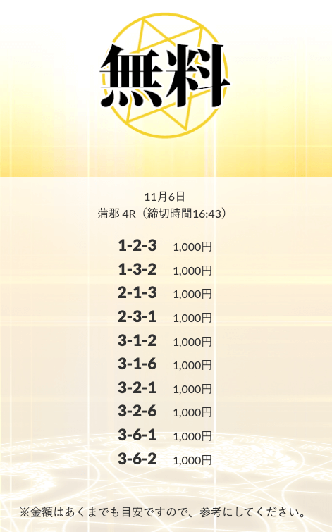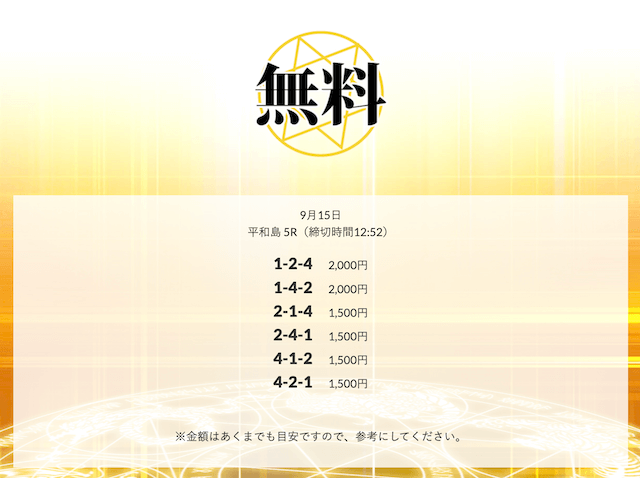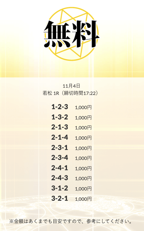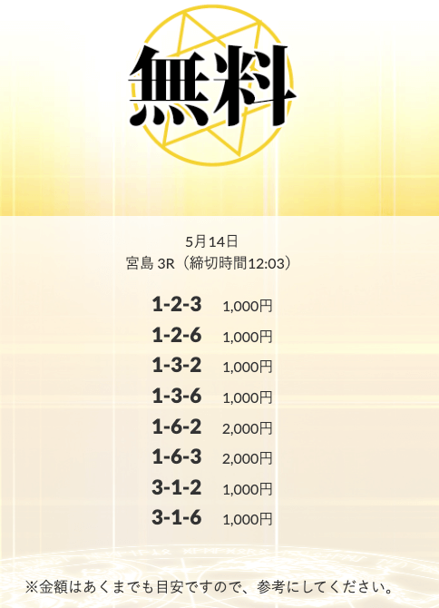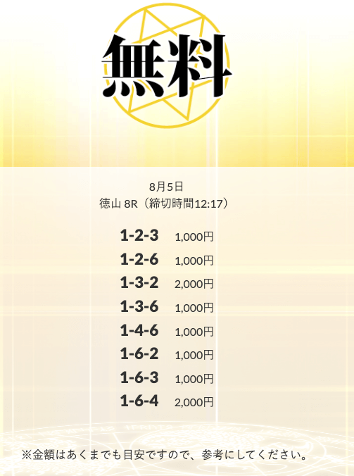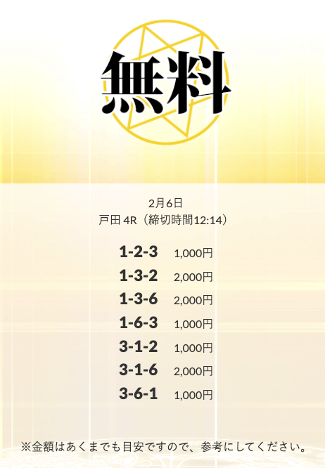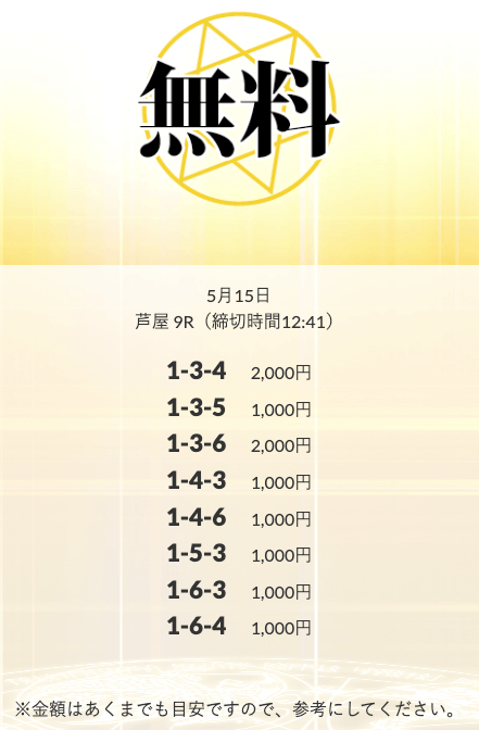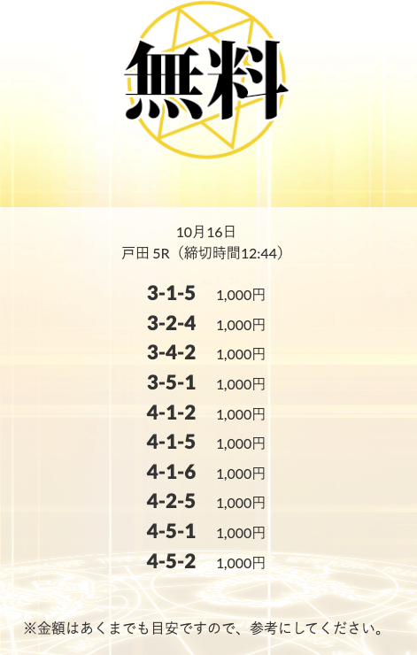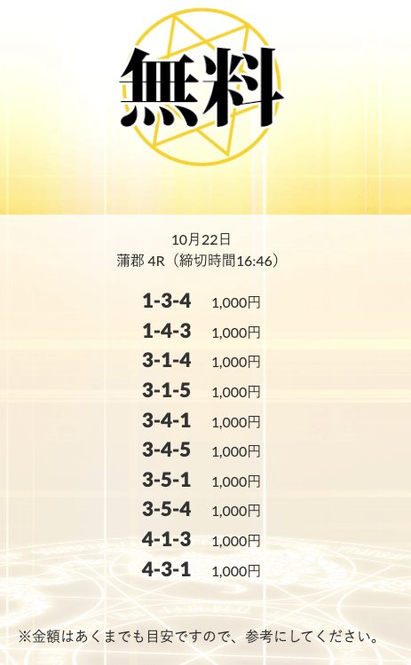 無料予想を実際に使ってみた際、