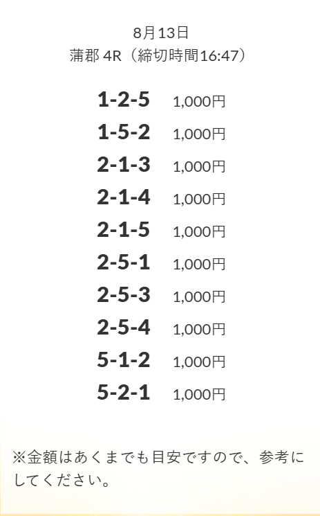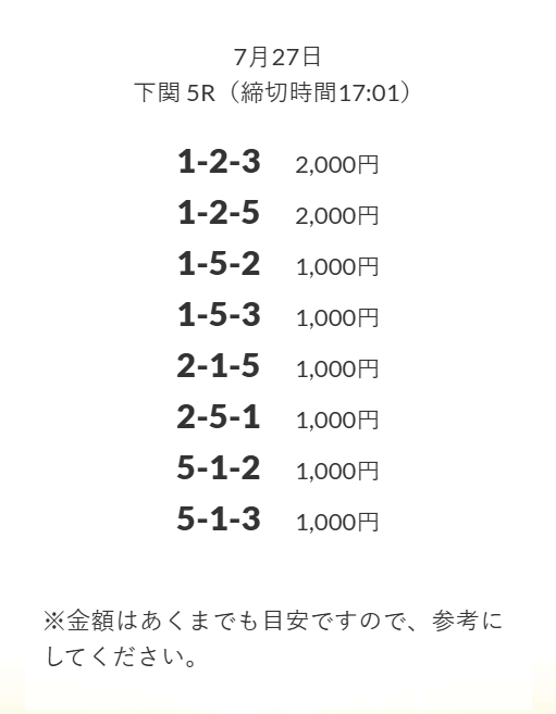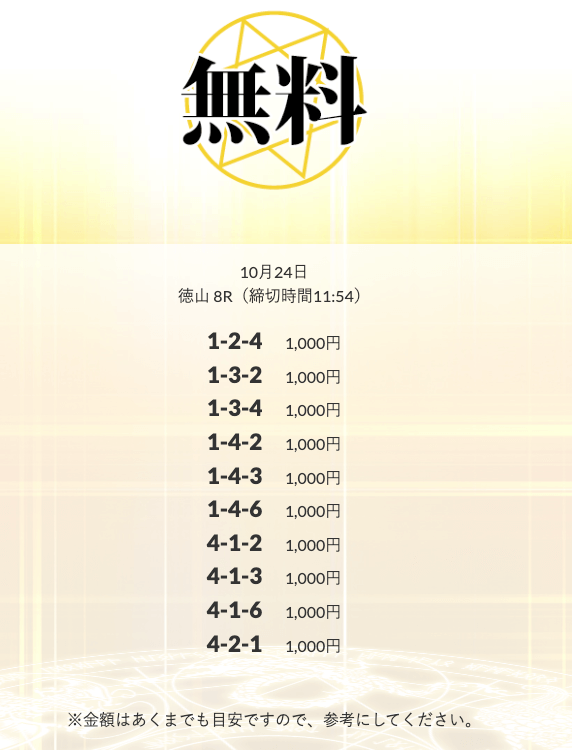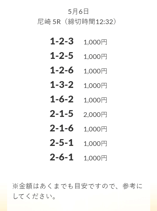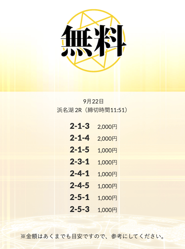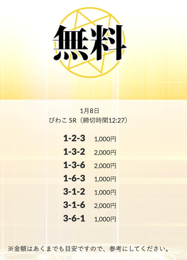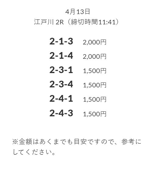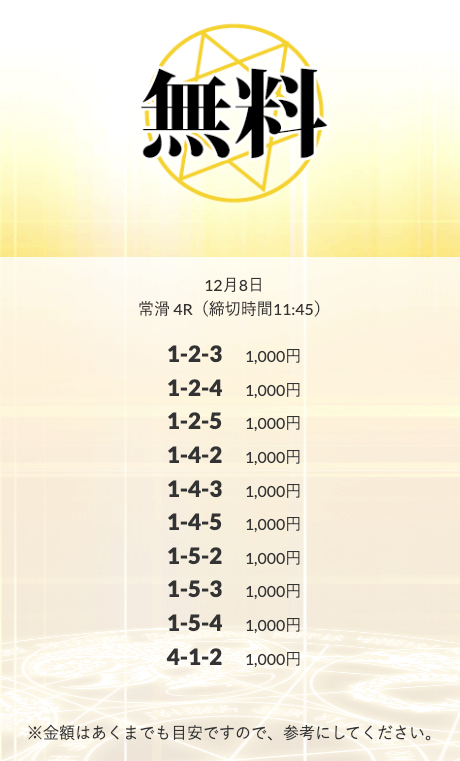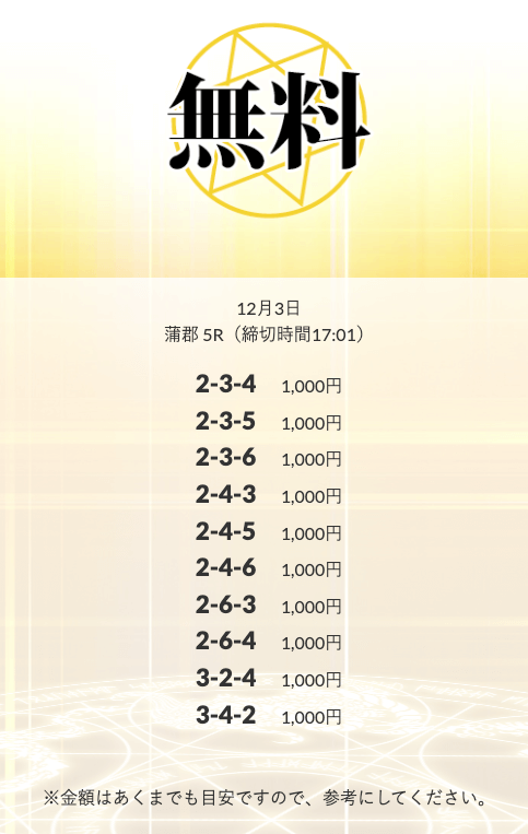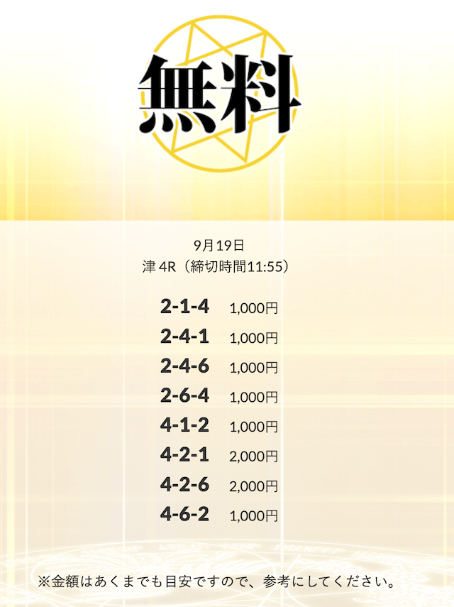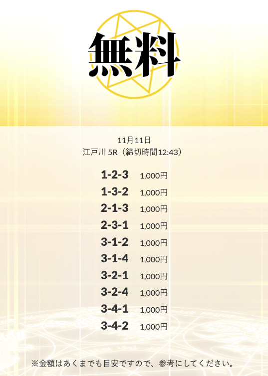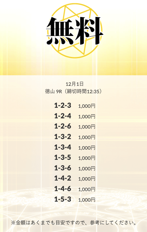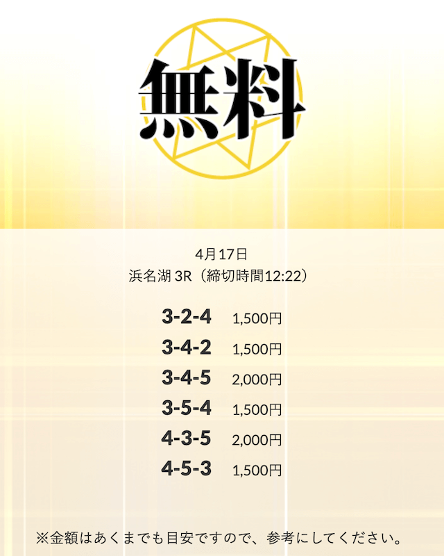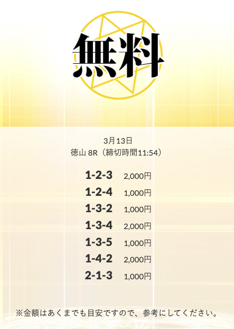 無料予想を実際に使ってみた際、