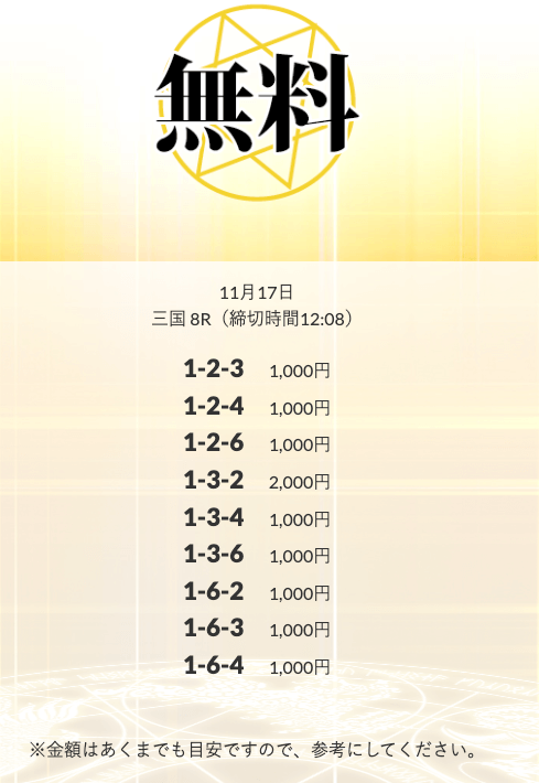 | 11月17日 | 三国8R | 三連単 | 0円 | 📸 |