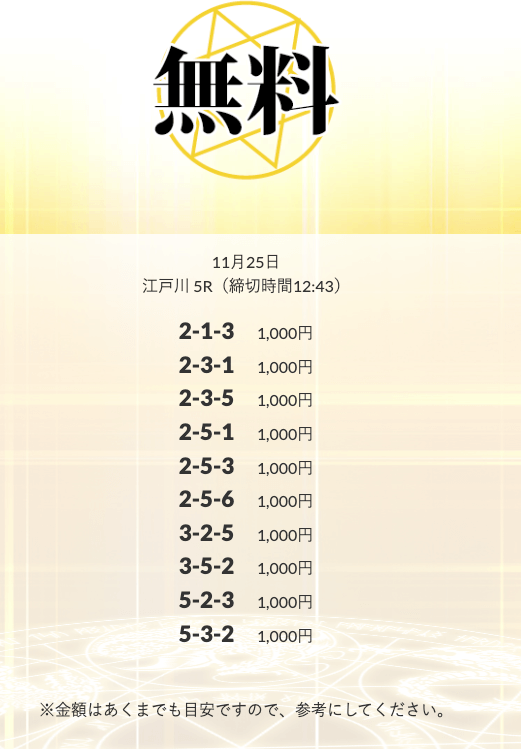 | 11月25日 | 江戸川5R | 三連単 | 0円 | 📸 |
