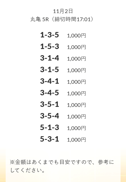 | 11月2日 | 丸亀5R | 三連単 | +10,100円 | 📸 |