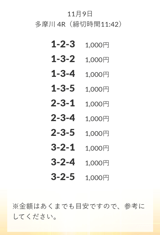 | 11月9日 | 多摩川4R | 三連単 | +33,400円 | 📸 |