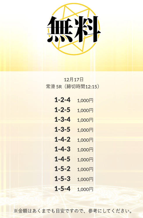 | 12月17日 | 常滑5R | 三連単 | +21,500円 | 📸 |