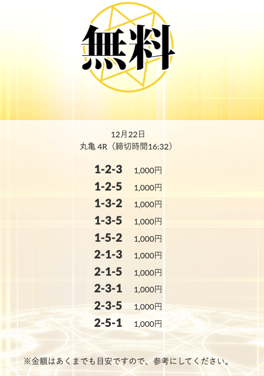 | 12月22日 | 丸亀4R | 三連単 | 0円 | 📸 |