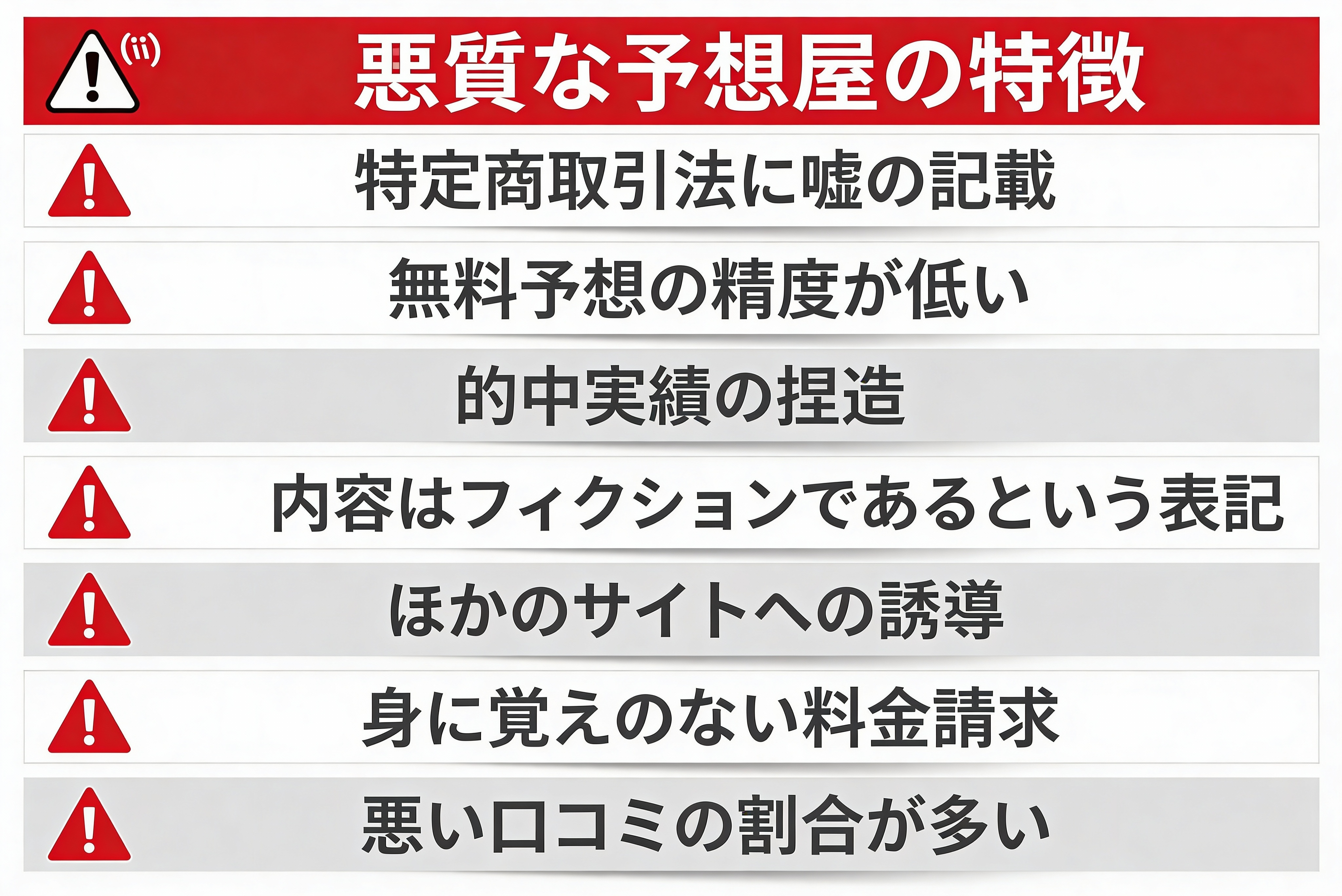 中には、予想の精度・口コミの評判が良くても、詐欺行為をしているサイトも存在しています。