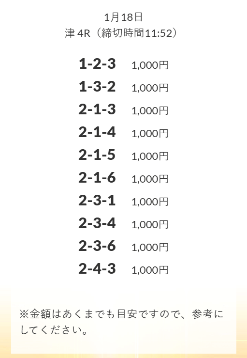 | 1/18 | 津4R | 3単 | +22,100円 | 📸 |