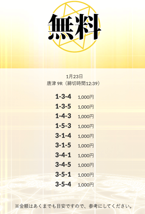 | 1/23 | 唐津9R | 3単 | 0円 | 📸 |
