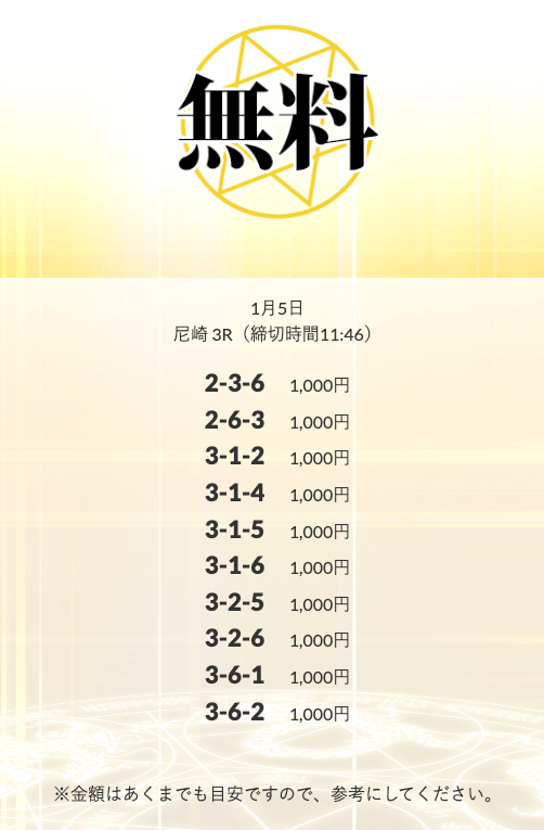 | 1/5 | 尼崎3R | 3単 | 0円 | 📸 |