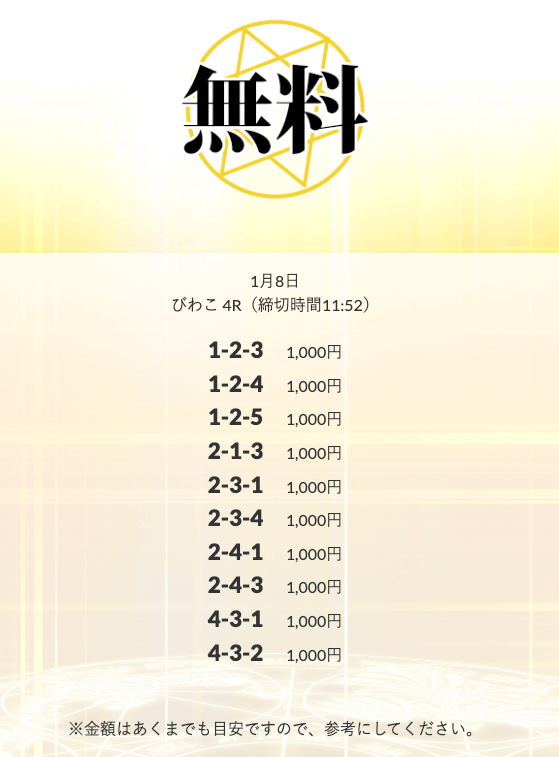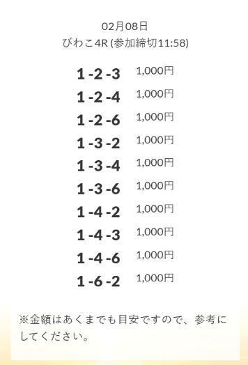 | 2/5 | びわこ4R | 3単 | 0円 | 📸 |