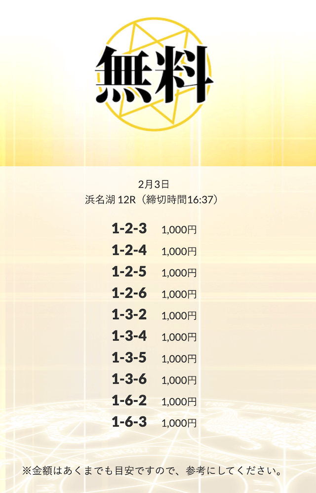 | 2/3 | 浜名湖12R | 3単 | 0円 | 📸 |