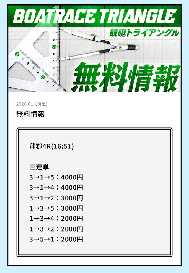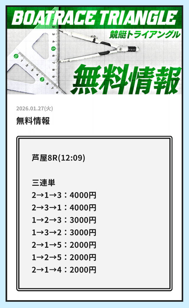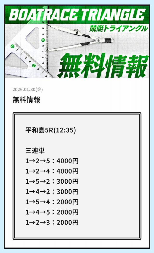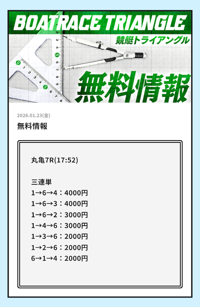 そのため舟脳では、引き続き競艇トライアングルの無料予想に参加し、結果を積み重ねながら本当の実力を検証していきます。