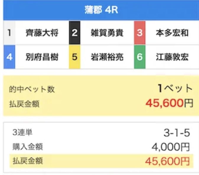 相手は②〜⑤号艇で組み立てており、スジ舟券の理論どおりの決着を狙った構成です。