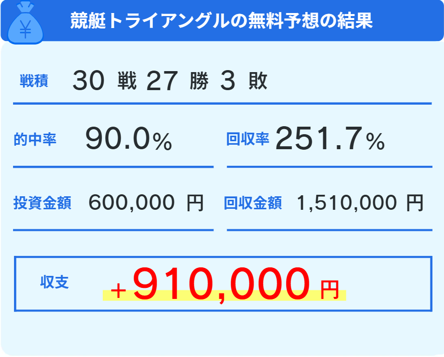 舟脳の検証により、競艇トライアングルは「優良競艇予想サイト」と判断しました。もちろん、競艇予想に絶対はなく、好不調の波は存在します。