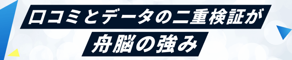 口コミの主観と、検証員の分析を掛け合わせることで、より正確で再現性の高い検証を実現しているのが舟脳の強みです。