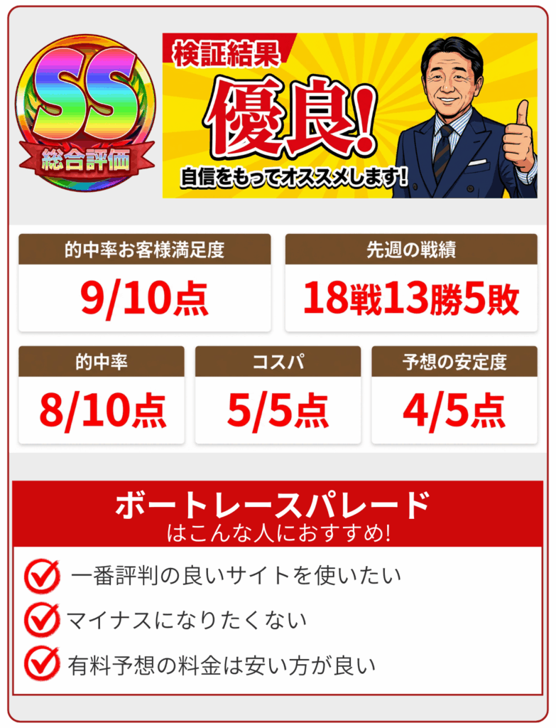 ユーザーからの評価も非常に高く、今一番人気の競艇予想サイトといえるでしょう。