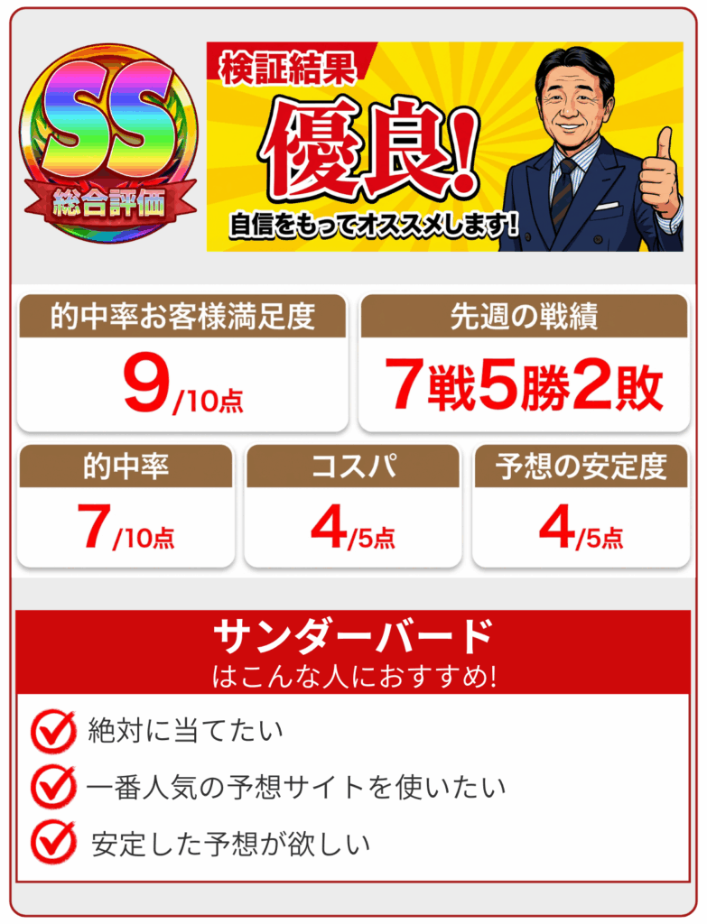 データ重視だから予想はちょっと堅めだけど、その分信頼できる感じ。