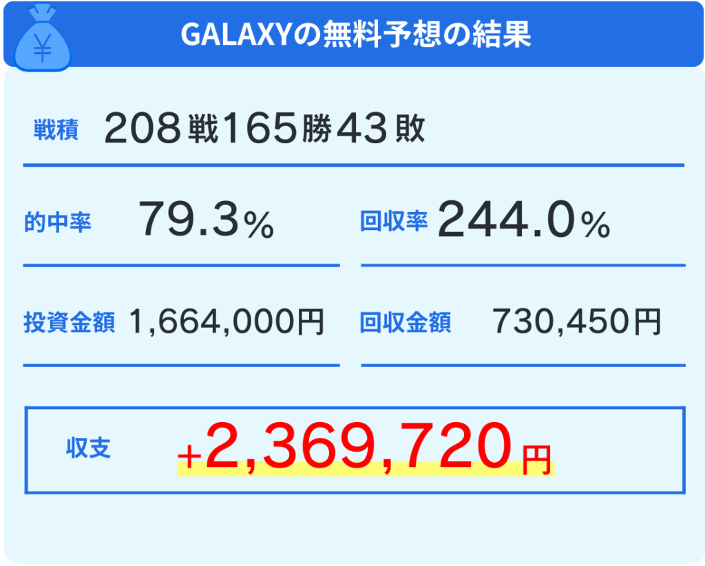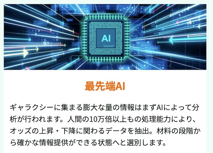 GALAXYの熟練予想チームがAIの分析結果を精査し、人の判断を加えることで予想の精度を極限まで引き上げているようです。