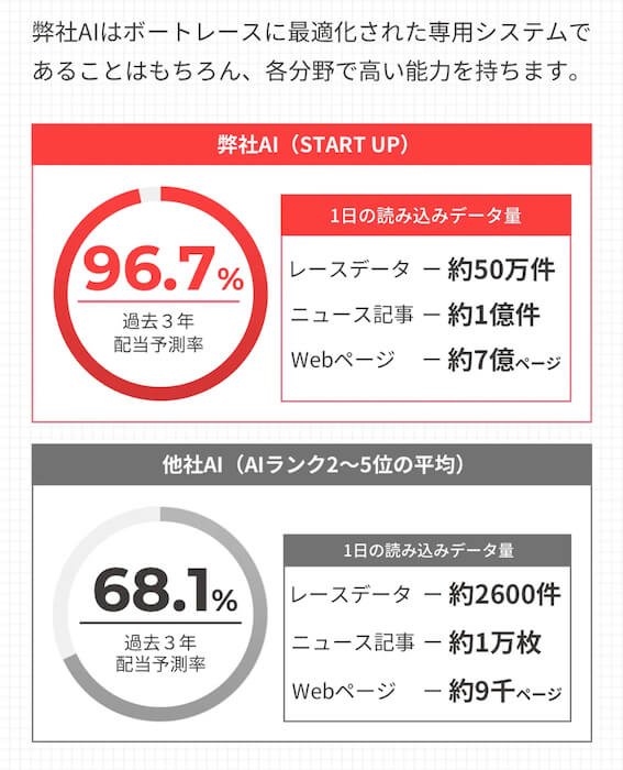 見ている感じ、競艇予想に特化した独自AIシステムを開発しているようです。