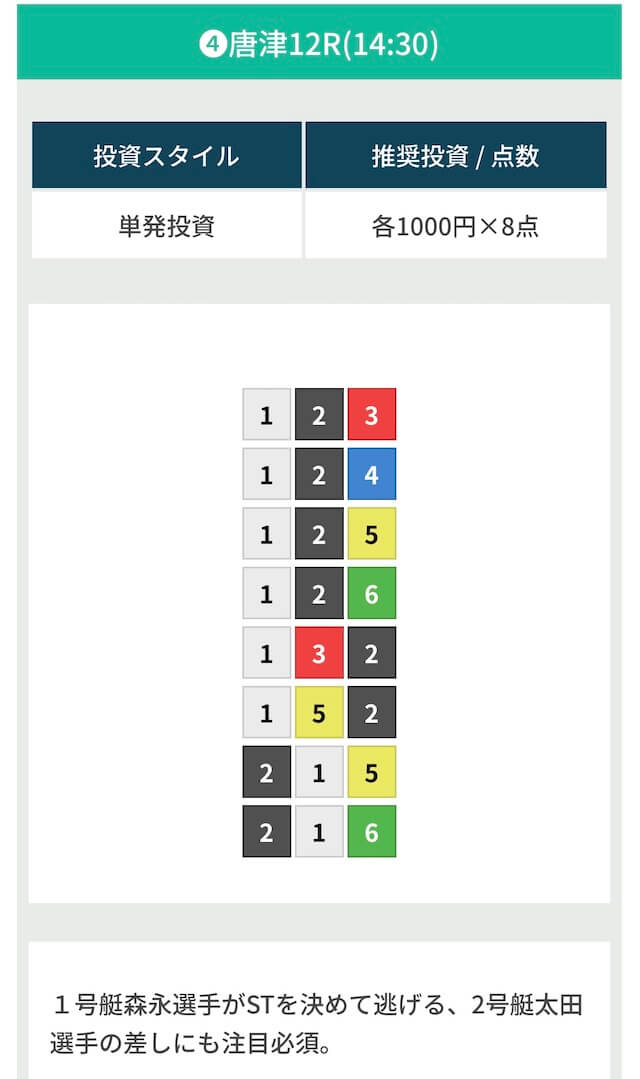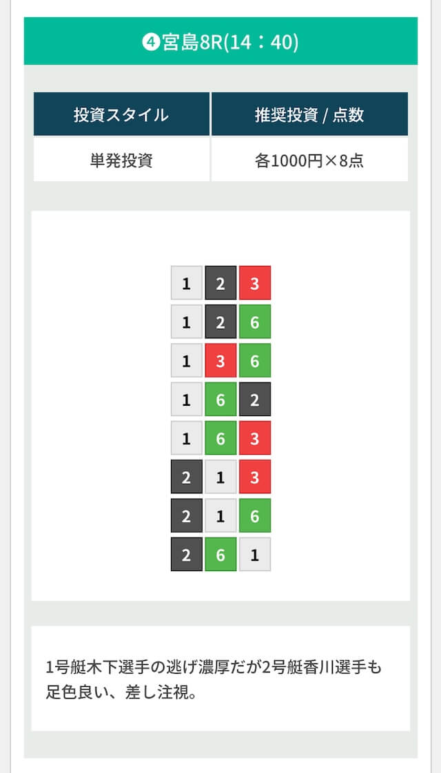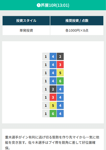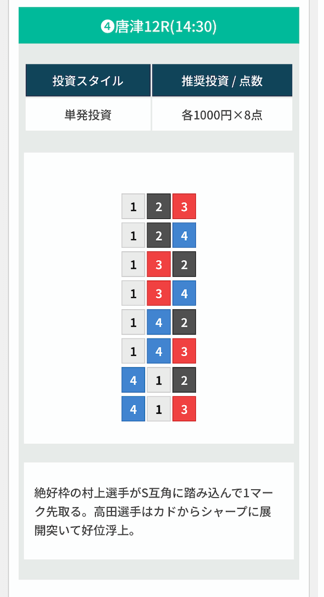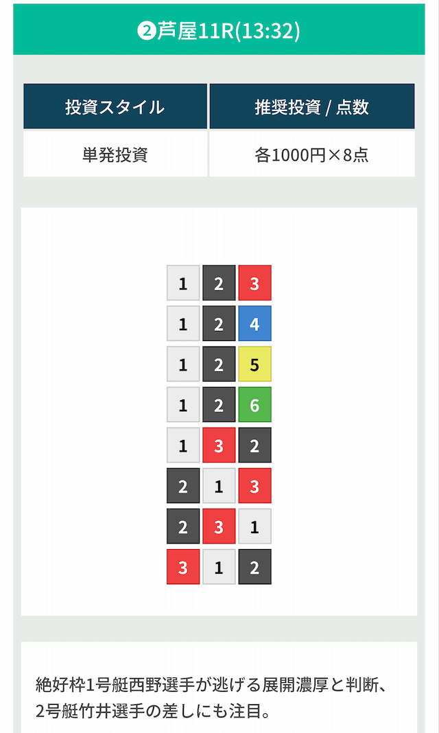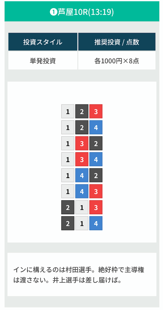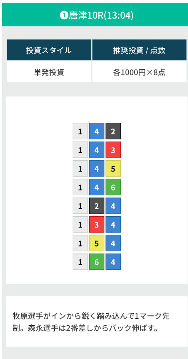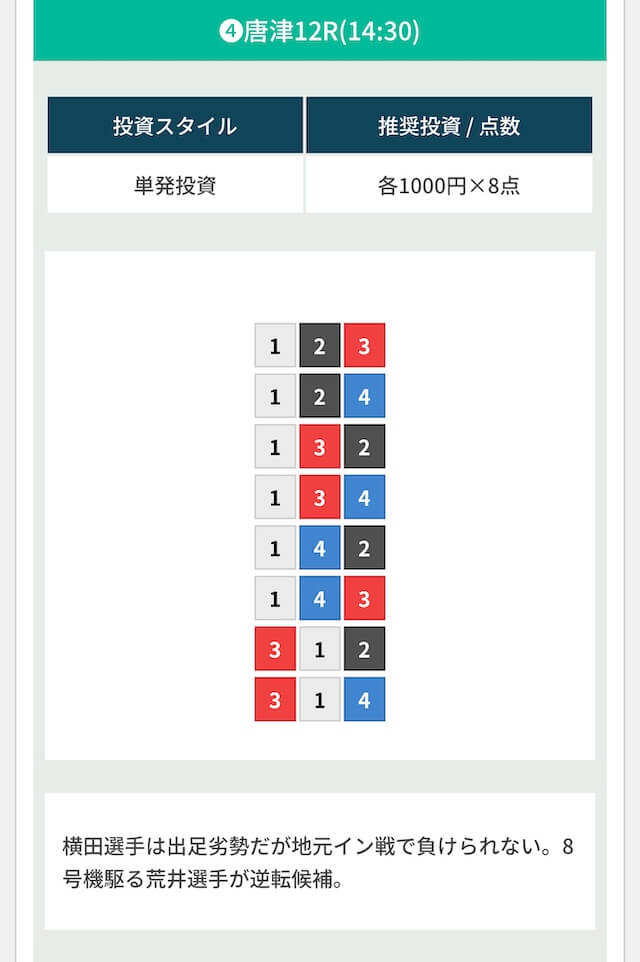 買い目にはすべて根拠コメント付きなので、初心者でも予想の流れが理解しやすく、