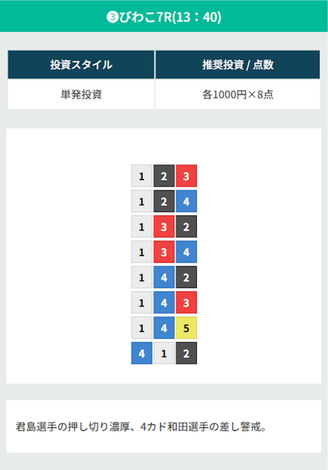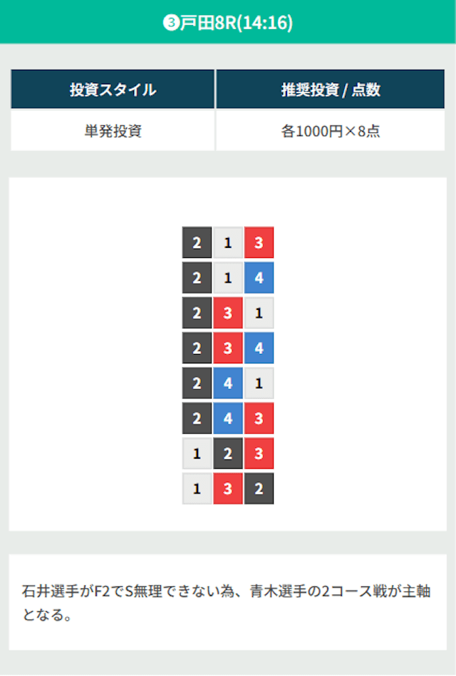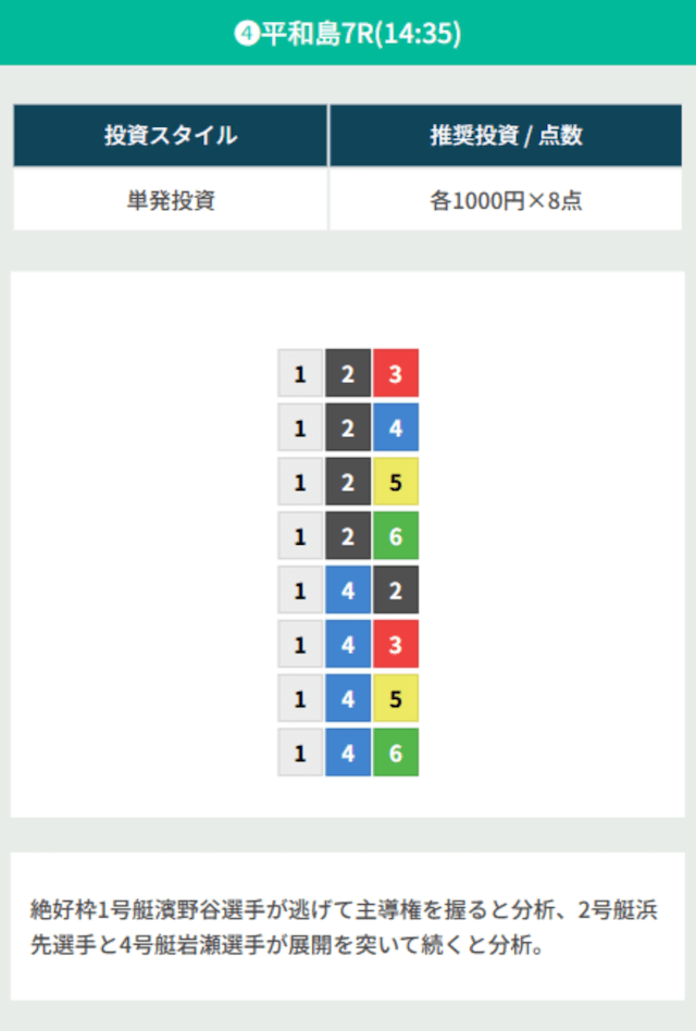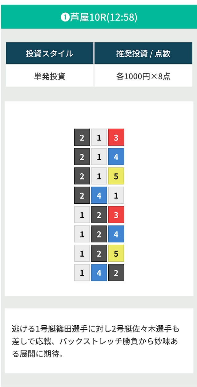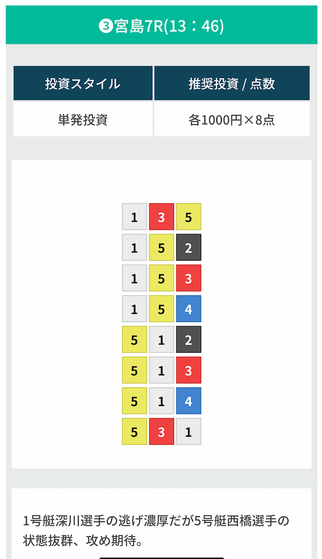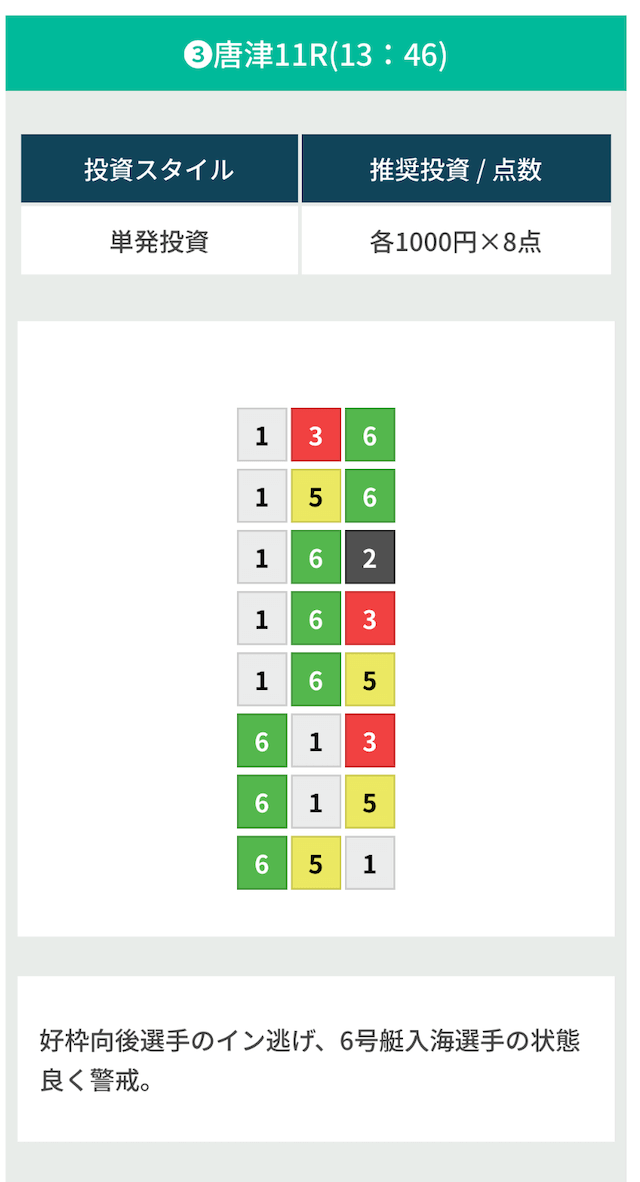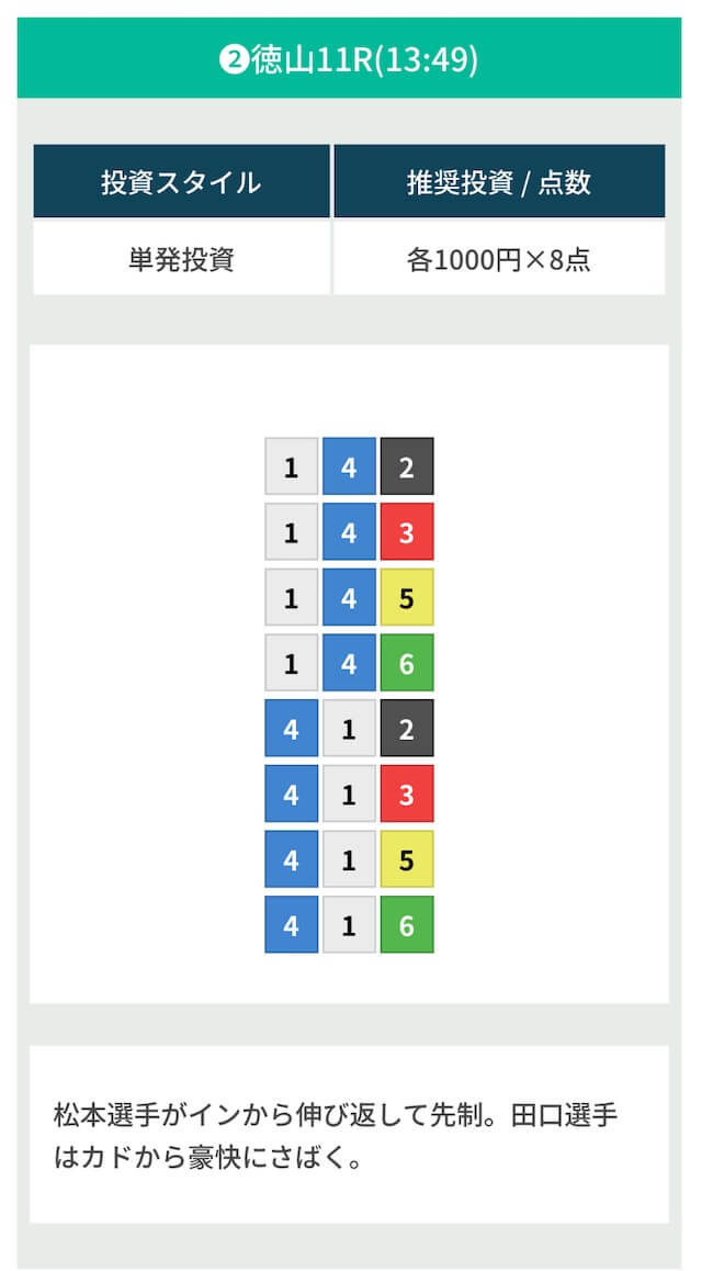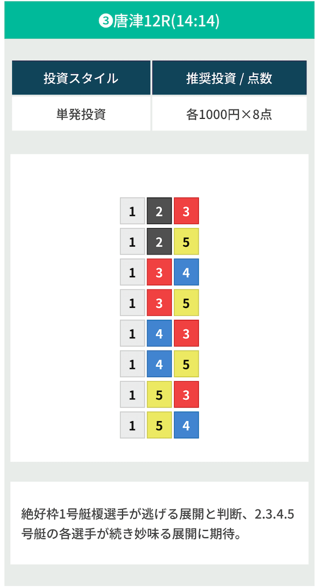 買い目にはすべて根拠コメント付きなので、初心者でも予想の流れが理解しやすく、